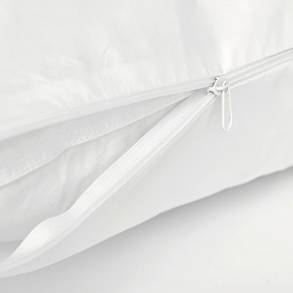 Защитные чехлы надеваются непосредственно на подушку. Закрываются на молнию. Чехлы выполнены в белом цвете. Так вы можете использовать постельное белье любого цвета: цвет подушки или ее канта не будет просвечивать сквозь наволочку.