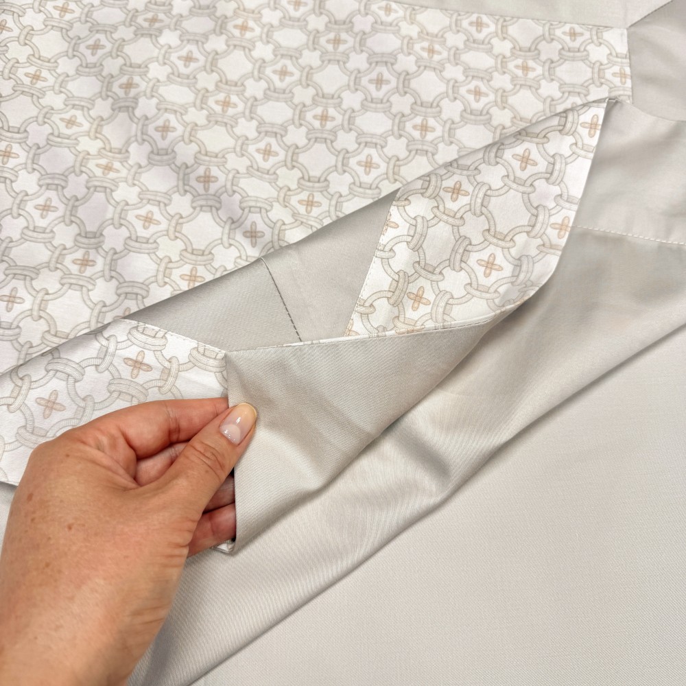 В комплекте вместо традиционного пододеяльника добавлено одеяло-комфортер. Это легкое одеяло наполнено тенселем и искусственным шелком в равных пропорциях. Воздушное, "дышащее", неприхотливое в уходе. Чехол одеяла выполнен из того же сатина, что и простыня с наволочками.