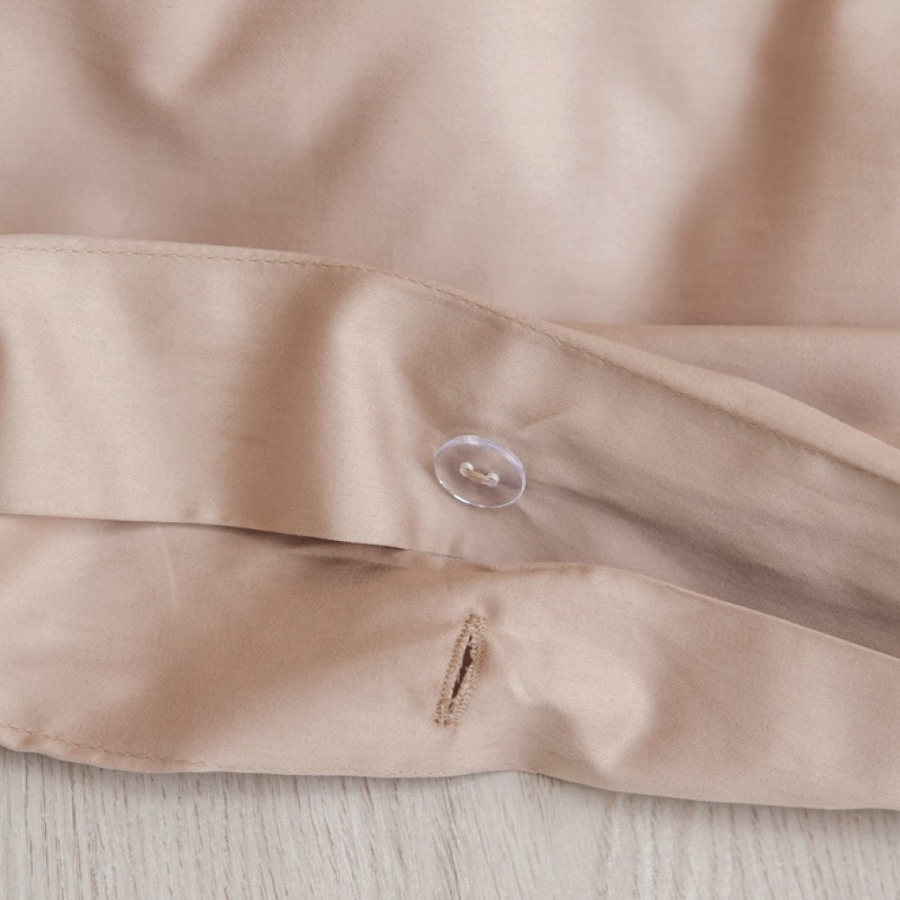 Комплекты полностью однотонные. На уголке пододеяльника сделана милая вышивка "Less house, more feelings". Это девиз коллекции белья «Daily Bedding»: меньше быта, больше тактильно приятных ощущений и хорошего настроения по утрам. Вход в пододеяльники расположен внизу, застегивается на пуговицы, скрытые за аккуратным клапаном. Наволочки выполнены в оксфордском дизайне - с ушками по периметру. Закрываются методом запаха. Простыни в комплектах свободные (прямые). Комплекты упакованы в оригинальные сатиновые конверты.