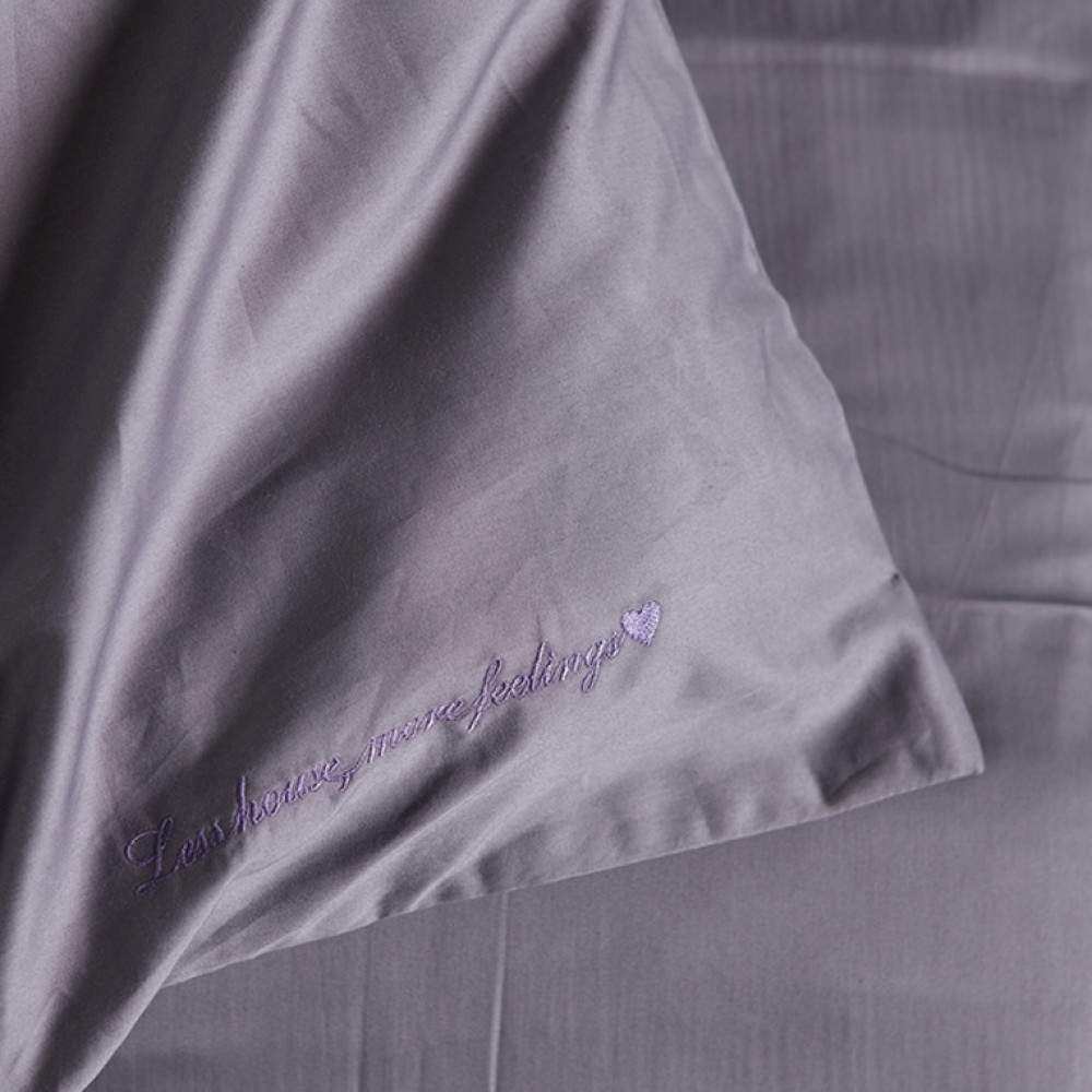 Комплекты полностью однотонные. На уголке пододеяльника сделана милая вышивка "Less house, more feelings". Это девиз коллекции белья «Daily Bedding»: меньше быта, больше тактильно приятных ощущений и хорошего настроения по утрам. Вход в пододеяльники расположен внизу, застегивается на пуговицы, скрытые за аккуратным клапаном. Наволочки выполнены в оксфордском дизайне - с ушками по периметру. Закрываются методом запаха. Простыни в комплектах свободные (прямые). Комплекты упакованы в оригинальные сатиновые конверты.