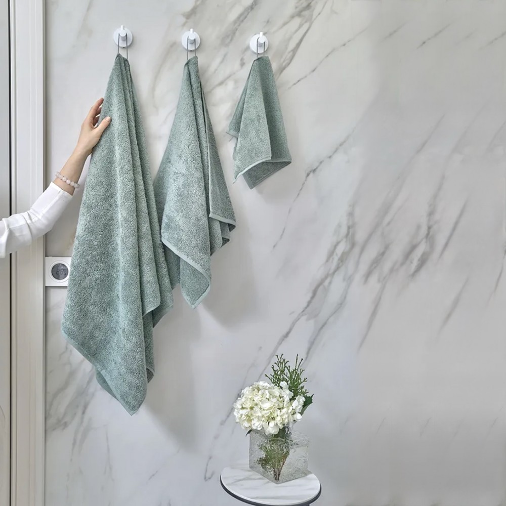Линейка полотенец «Teddy» представлена в нескольких расцветках: голубая ель, сливовый джем, пудровый, жемчужный, серо-бежевый, серый и белый. В линейке представлены 3 размера: 30х50 см, 50х100 см и 70х140 см. Полотенца можно приобрести отдельно и уже готовыми комплектами. Всю линейку полотенец «Teddy» смотрите тут.