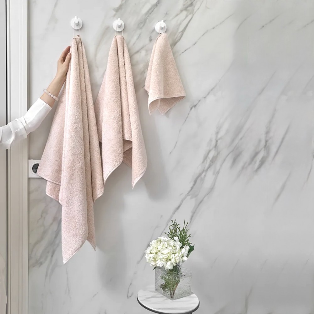 Комплект из 3-х махровых полотенец «Teddy», размеры: 30х50 см (1 шт.), 50х100 см (1 шт.), 70х140 см (1 шт.); состав: 100% хлопок (Microcotton); цвет - пудровый.