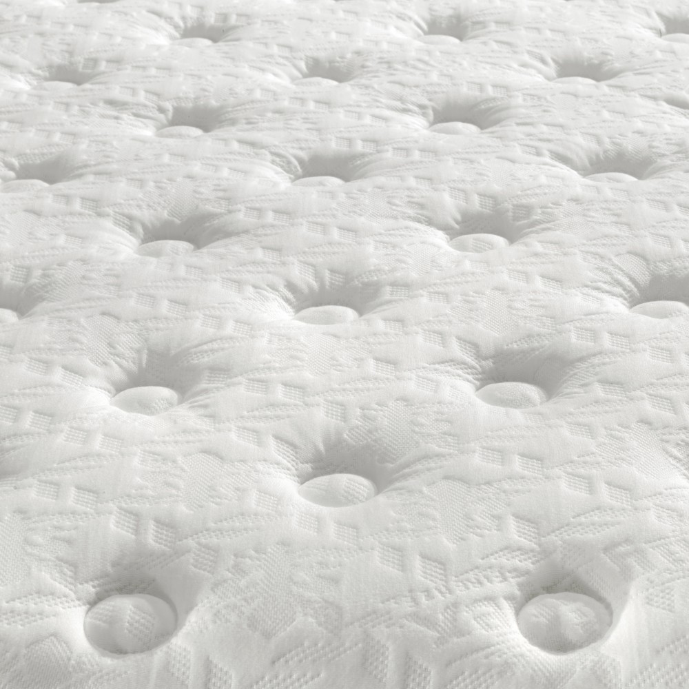 Чехол матраса выполнен из трикотажа с жаккардовым узором. В составе ткани вискозное волокно и волокна outlast. Вискозное волокно производят из натуральной древесной целлюлозы. Оно отлично впитывает и легко отводит излишнюю влагу. Тактильно шелковистое и износостойкое. Волокна outlast - это инновационное терморегулирующее волокно, разработанное для космической отрасли. В структуре волокна содержатся восковые микрокапсулы. Они чувствительны к температуре человеческого тела. При температуре выше 36 градусов они расширяются и поглощают избыточное тепло, а при понижении температуры начинают отдавать тепло.