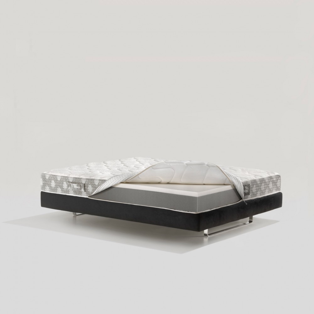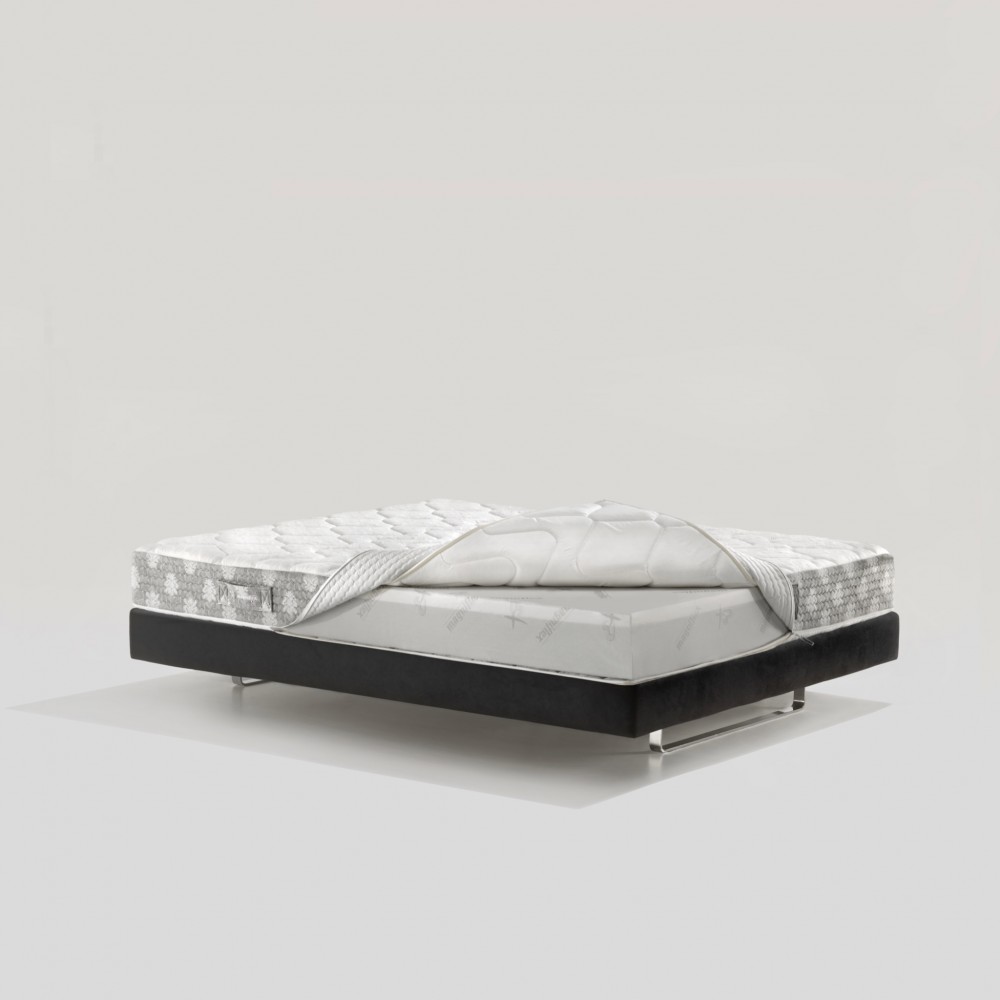 Верхняя сторона чехла содержит слой пены Memoform (2 см) и прослойку из волокна Super Soft Fiber. Memoform придает дополнительную мягкость матрасу и делает стык между половинками матраса совершенно незаметным. Волокно Super Soft Fiber создает супер мягкую дышащую прослойку. Обратная сторона чехла идет без слоя пены. Если использовать чехол этой стороной, то можно придать матрасу еще больше жесткости. По всему периметру матраса предусмотрена молния. Чехол полностью снимается.