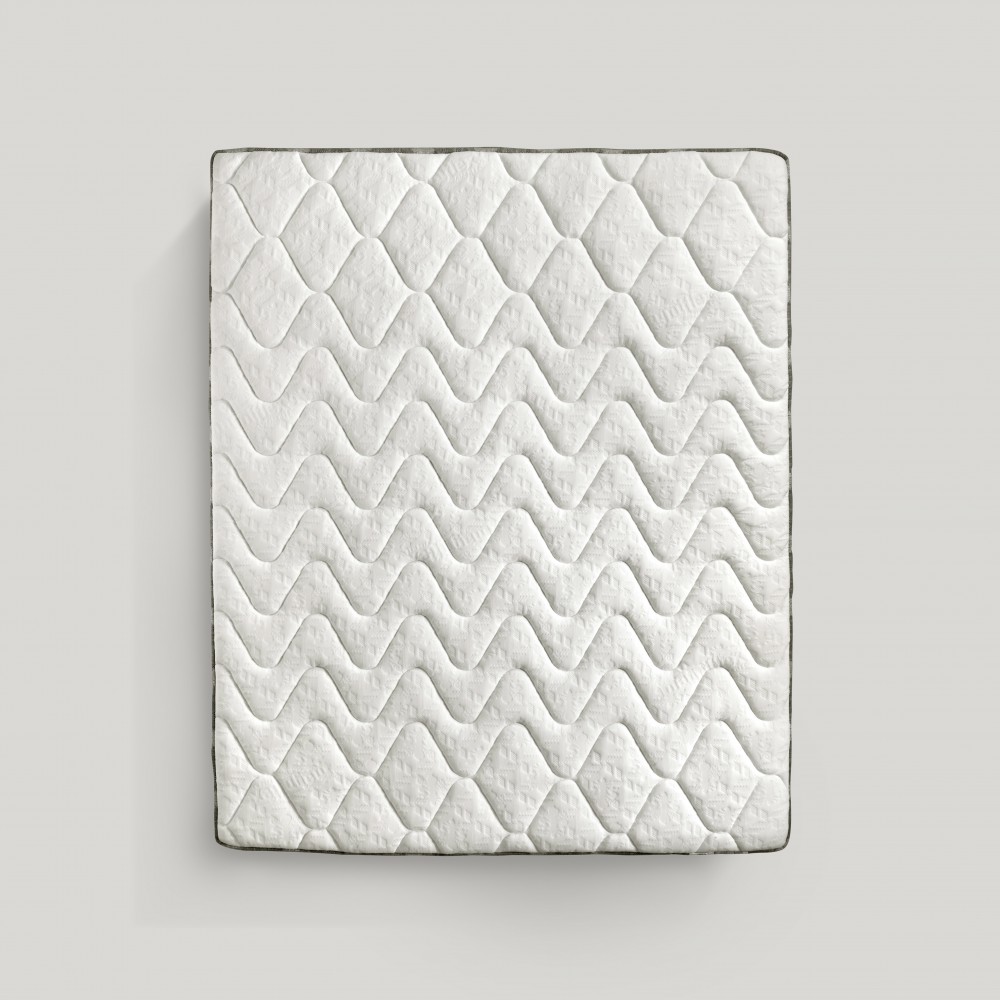 Чехол матраса выполнен из трикотажа с жаккардовым узором. В составе ткани вискозное волокно и волокна outlast. Вискозное волокно производят из натуральной древесной целлюлозы. Оно отлично впитывает и легко отводит излишнюю влагу. Тактильно шелковистое и износостойкое. Волокна outlast - это инновационное терморегулирующее волокно, разработанное для космической отрасли. В структуре волокна содержатся восковые микрокапсулы. Они чувствительны к температуре человеческого тела. При температуре выше 36 градусов они расширяются и поглощают избыточное тепло, а при понижении температуры начинают отдавать тепло.
