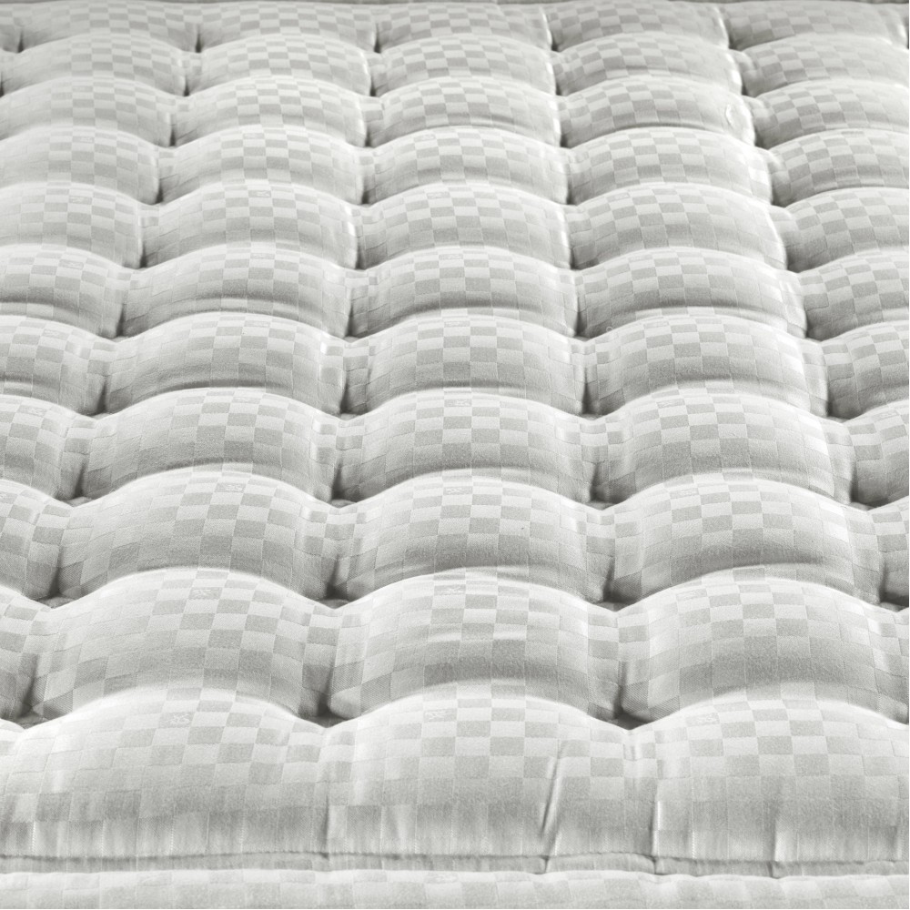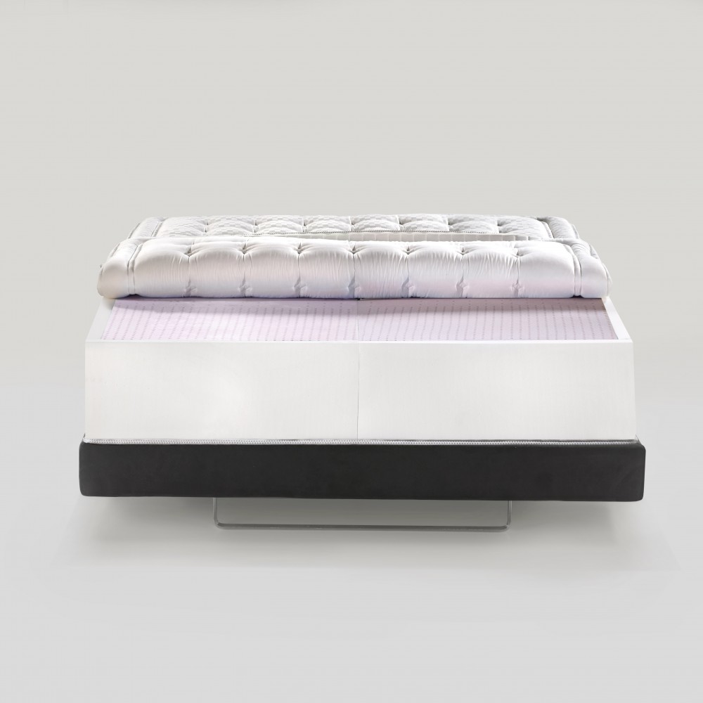 Чехол матраса выполнен из жаккардового сатина в элегантную шашечку. В составе ткани вискозное волокно. Его производят из натуральной древесной целлюлозы. Оно отлично впитывает и легко отводит излишнюю влагу. Тактильно шелковистое и износостойкое. А в жаккардовом исполнении обладает элегантным блеском. С каждой стороны чехла добавлен слой пены Memoform (2 см) и слой Hypoallergenic Fiber. Memoform придает дополнительную мягкость матрасу и делает стык между половинками матраса совершенно незаметным. Волокно Hypoallergenic Fiber создает мягкую дышащую гипоаллергенную прослойку. Между слоями комфорта и тканью чехла с одной стороны матраса сделана прослойка из кашемира и шерсти мериноса. А с обратной стороны сделана такая же прослойка, но из натурального шелка и льна. По всему периметру матраса предусмотрена молния. Чехол полностью снимается. Использовать чехол матраса можно с обеих сторон.
