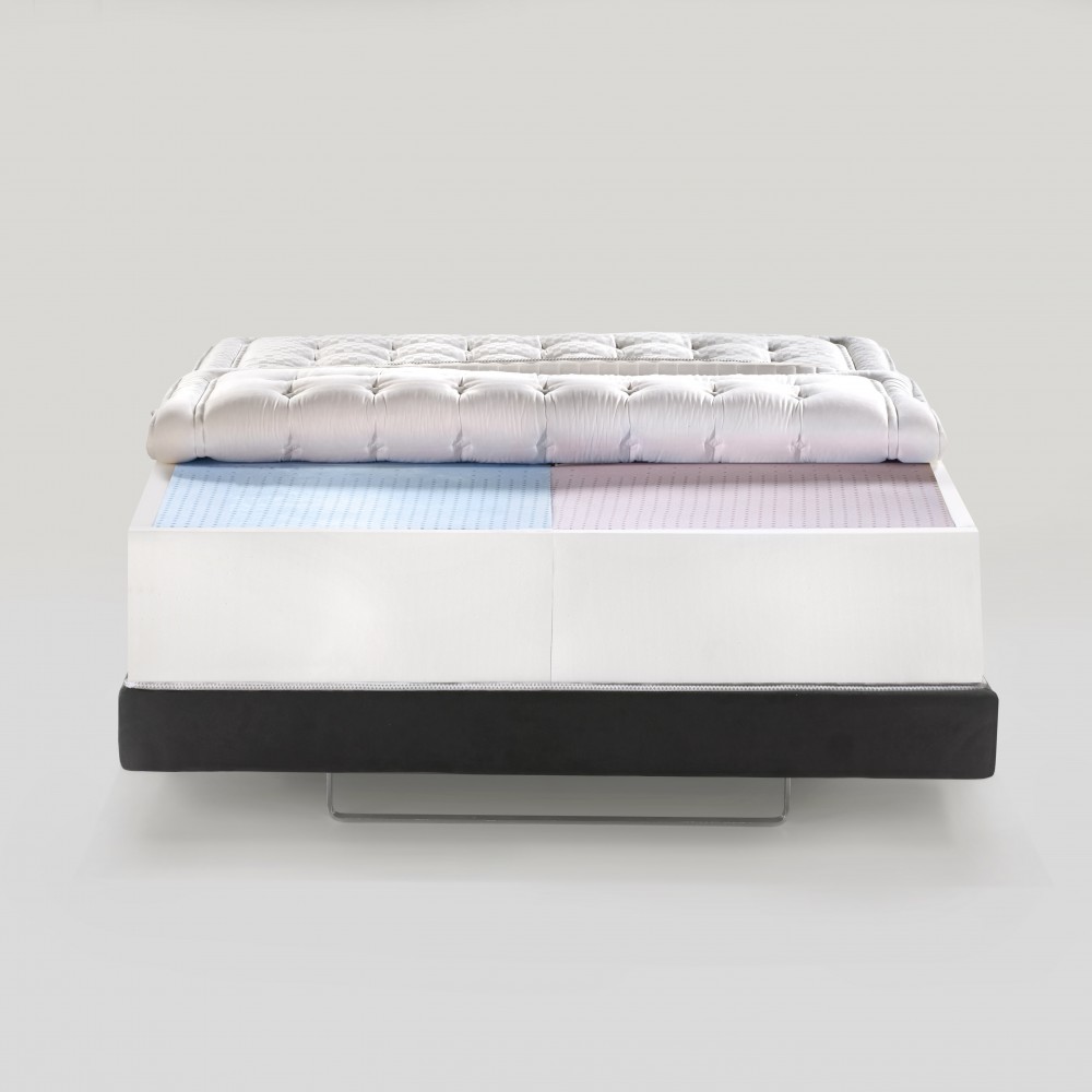 Матрас «Maestro Dual 14» из элитной коллекции итальянского бренда Magniflex - статусный, при этом с мягким характером. За чехлом с классической жаккардовой шашечкой спрятаны драгоценные слои кашемира и шерсти мериноса, которые обнимут вас своим сухим теплом. А обратная сторона задумана для жарких летних ночей: в ней находятся лен и натуральный шелк. Но варьировать вы можете не только согревающую или летнюю стороны чехла, но и степень комфорта самого матраса. Одна сторона матраса мягкая, обратная - средней мягкости. Вы можете выбирать уровень мягкости как всего матраса, так и каждой его половины отдельно. Это прекрасное решение для пар, имеющих разные предпочтения в жесткости матраса.