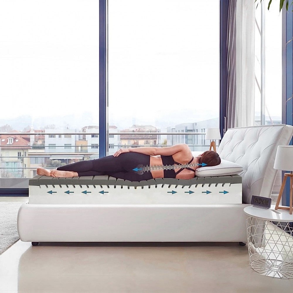 Линейка премиальных матрасов «Magnistretch» от итальянского бренда Magniflex разработана с применением запатентованной технологии Magnistretch. Верхний слой матраса имеет систему насечек и пазов. Под воздействием веса человека на матрас эта система активируется и обеспечивает деликатное растяжение и расслабление позвоночника.