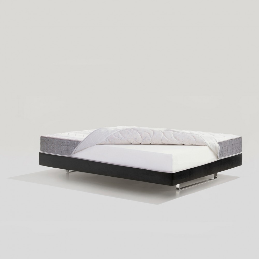 Чехол матраса выполнен из жаккардового трикотажа. В составе ткани вискозное волокно. Вискозное волокно производят из натуральной древесной целлюлозы. Оно отлично впитывает и легко отводит излишнюю влагу. Тактильно шелковистое и износостойкое. Верхняя сторона чехла содержит слой пены Memoform (2 см) и прослойку из волокна Super Soft Fiber. Memoform придает дополнительную мягкость матрасу. Волокно Super Soft Fiber создает супер мягкую дышащую прослойку. Обратная сторона чехла идет без слоя пены. Если использовать чехол этой стороной, то можно придать матрасу еще больше жесткости. По всему периметру матраса предусмотрена молния. Чехол полностью снимается.