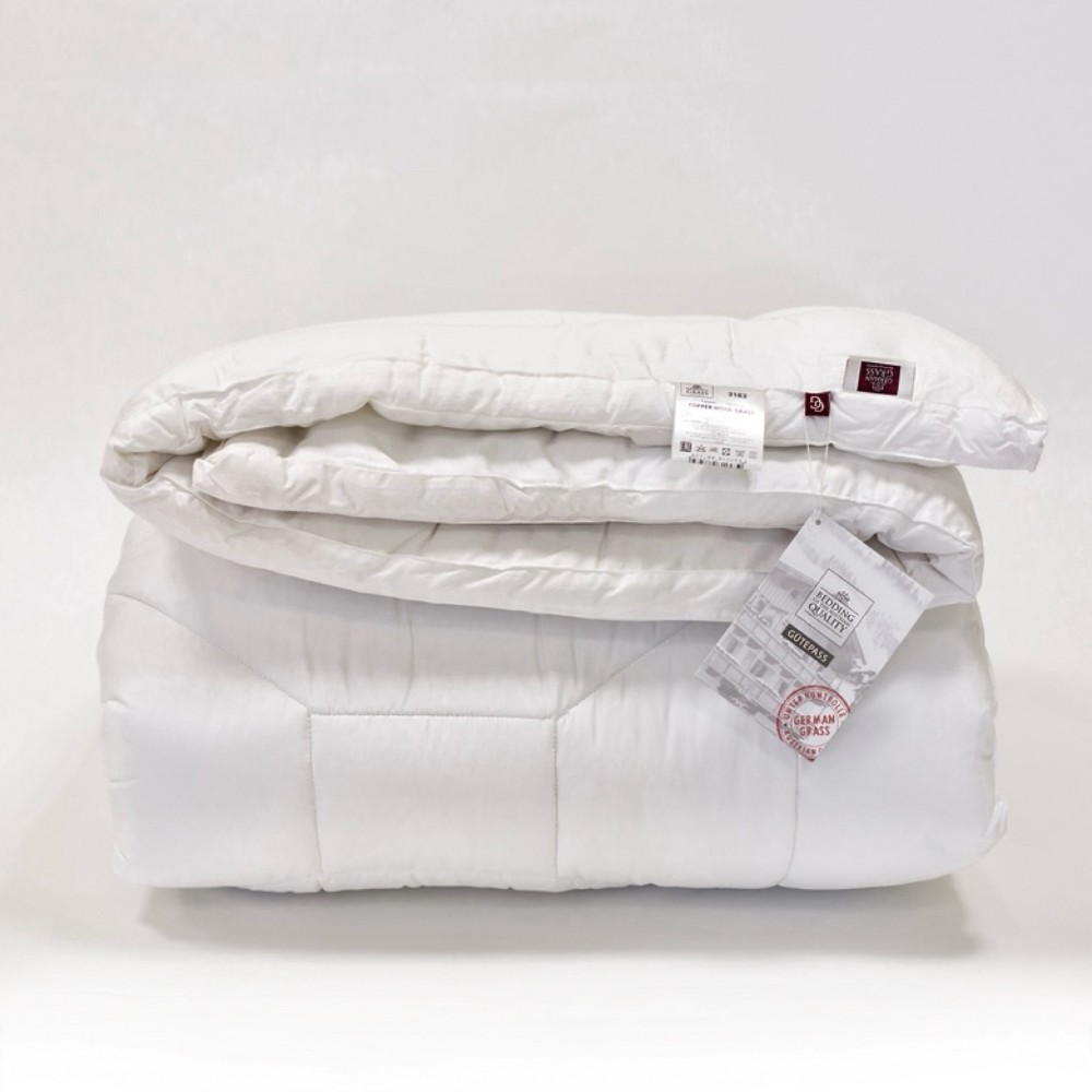 Наматрасники-топперы «Topper Wool Grass» двухслойные. Верхний слой сделан из шерсти овец мериносов. Натуральную овечью шерсть термосклеивают высокосиликонизированным би-компонентом. Так получают устойчивый к внешним воздействиям шерстяной наполнитель. Нижний слой сделан из высокопрочного синтетического наполнителя холлкон (hollcon). Он изготовлен из полых полиэфирных волокон, скрученных в упругие спирали. Этот слой позволяет наматраснику-топперу удерживать форму при деформации и сжатии. Чехлы выполнены из плотного хлопкового сатина в жемчужно-белом оттенке. Изделия упакованы в сумки-чехлы на молнии, которые можно использовать для сезонного хранения постельных принадлежностей.