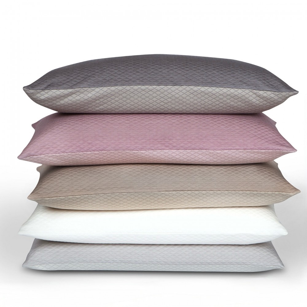 Наволочки «Bella Donna Sommerkissenbezug» от немецкого бренда Formesse создавались в дополнение к летним трикотажным одеялам «Bella Donna Sommerdecke». Они выполнены из такого же трехслойного жаккардового трикотажа, что и одеяла. Верхний слой - это трикотаж из тенселя. Шелковистый на ощупь, отлично отводит избыточное тепло и влагу. Обратная сторона - это хлопковый трикотаж. Это нежное трикотажное полотно прошло дополнительную обработку алое вера и аргановым маслом. Между слоями находится легкий воздушный слой полиэстера. Три слоя искусно вплетены друг в друга особым жаккардовым переплетением в виде ромбиков.