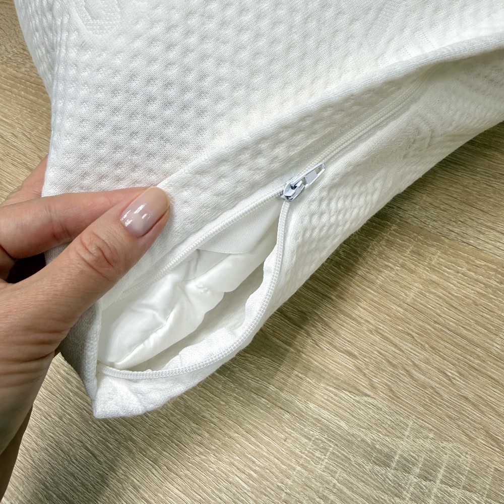 Наволочки «Double Jersey» закрываются на молнию, скрытую в специальном клапане. На подушки садятся плотно, аккуратно, не создают лишних складок. При этом легко снимаются - мембранная сторона свободно скользит по чехлу подушки.