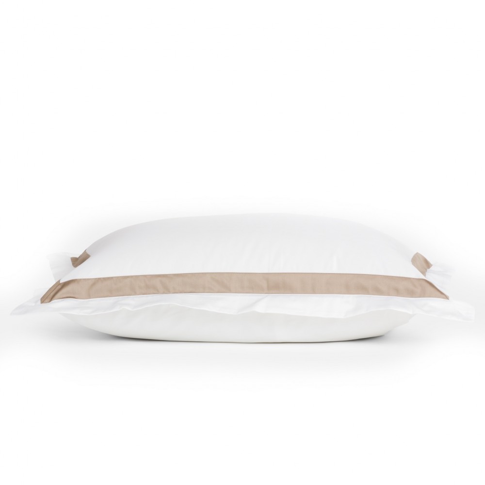 Наволочки «Alpine Caramel Beige Allure Grass» из сатина с широким кантом, состав: 100% хлопок, размер 50х70 см - 2 шт., цвет: снежно-белый/карамельно-бежевый.