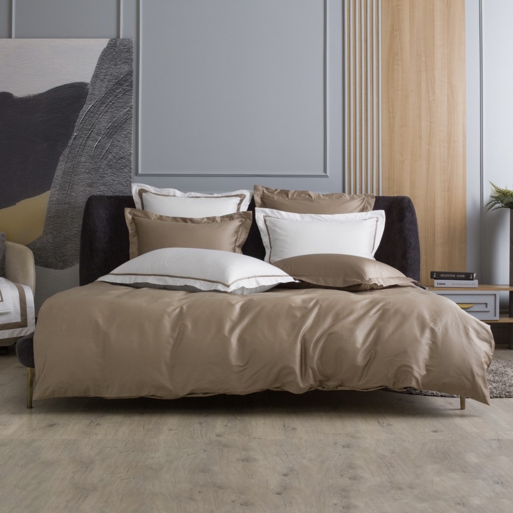 Сатин для коллекции выбран плотностью 400 ТС (ТС - Thread Counts - это международный стандарт вычисления плотности ткани, который определяется количеством нитей на дюйм). В составе отборный 100% хлопок. Нити для ткани используются тонкие и очень прочные. Благодаря такому сочетанию ткань получилась невероятно нежная, с красивым сатиновым блеском и очень прочная. Такой сатин не оставит равнодушным самого взыскательного покупателя.