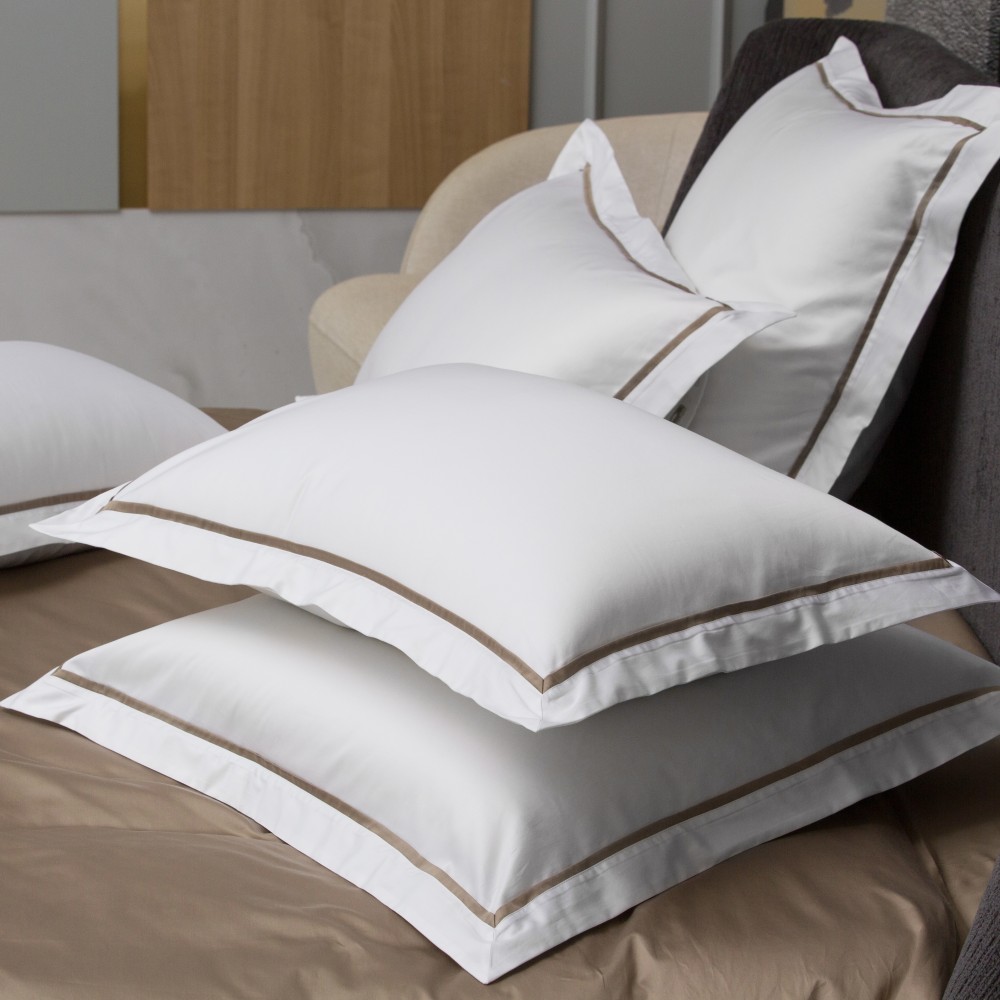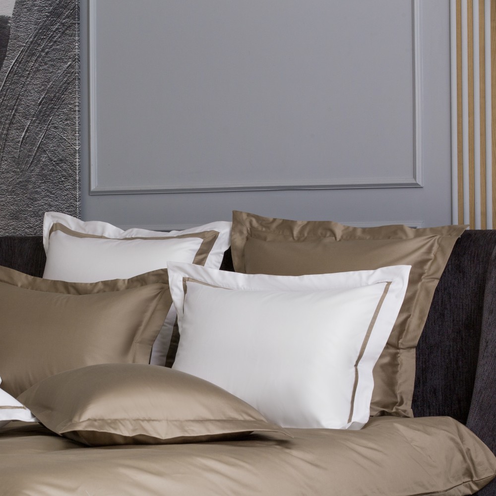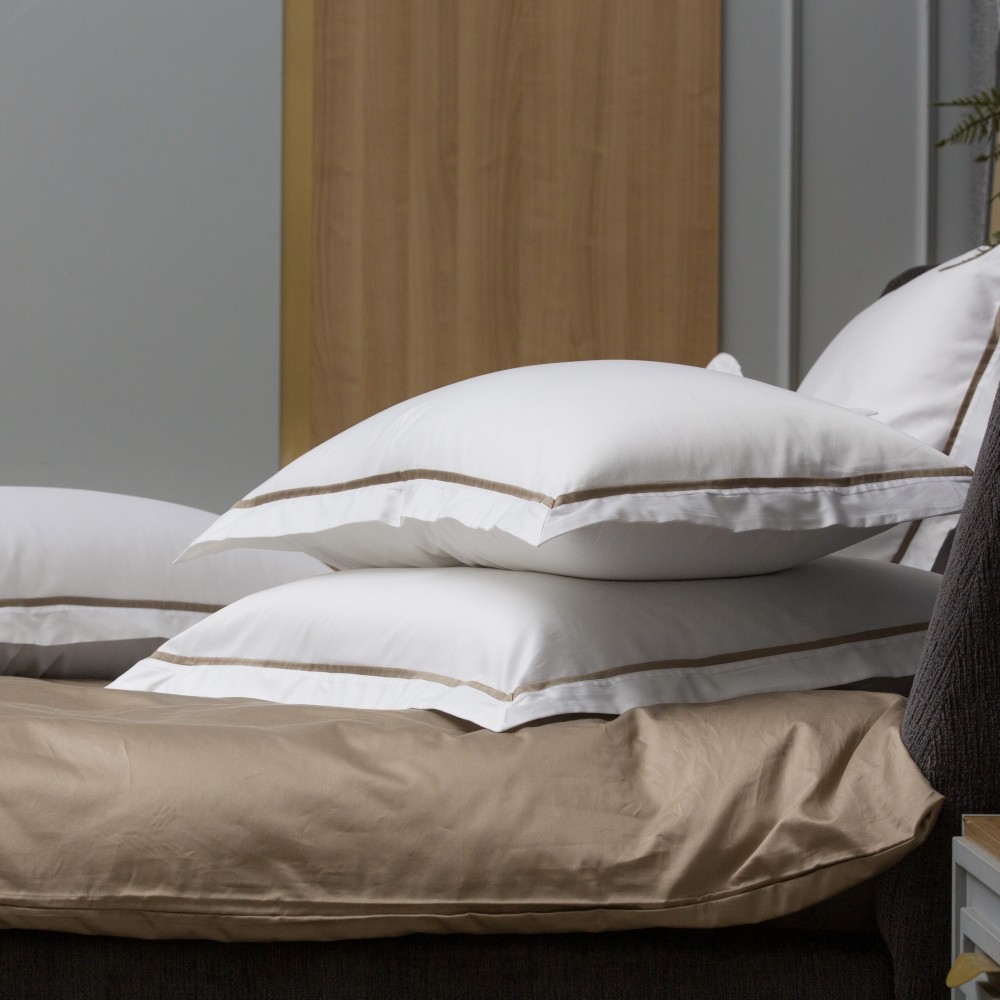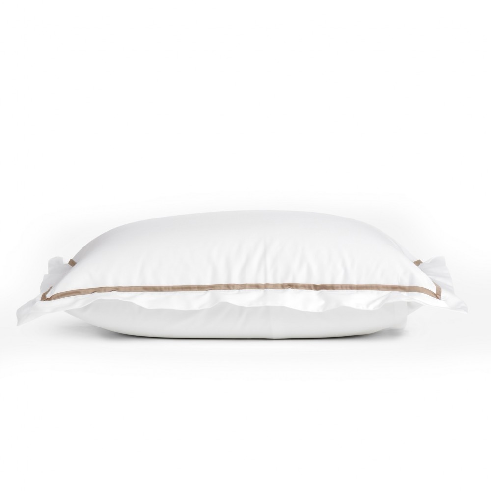 Наволочки «Alpine Caramel Beige Allure Grass» из сатина с узким кантом, состав: 100% хлопок, размер 50х70 см - 2 шт., цвет: снежно-белый/карамельно-бежевый.