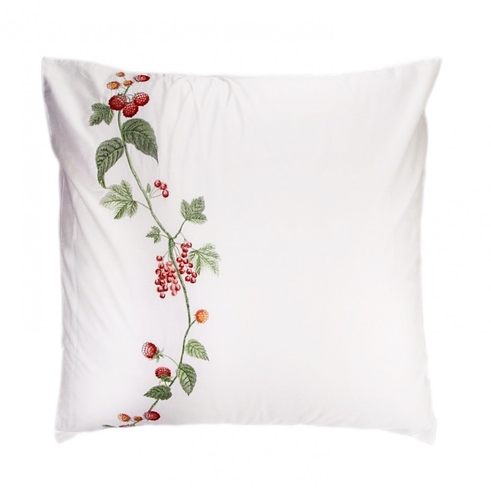 Наволочки «Ягодная поляна» выполнены в классическом дизайне (без "ушек"). Закрываются методом запаха. По одной стороне расшиты веточками с ягодами.