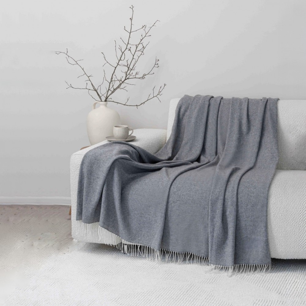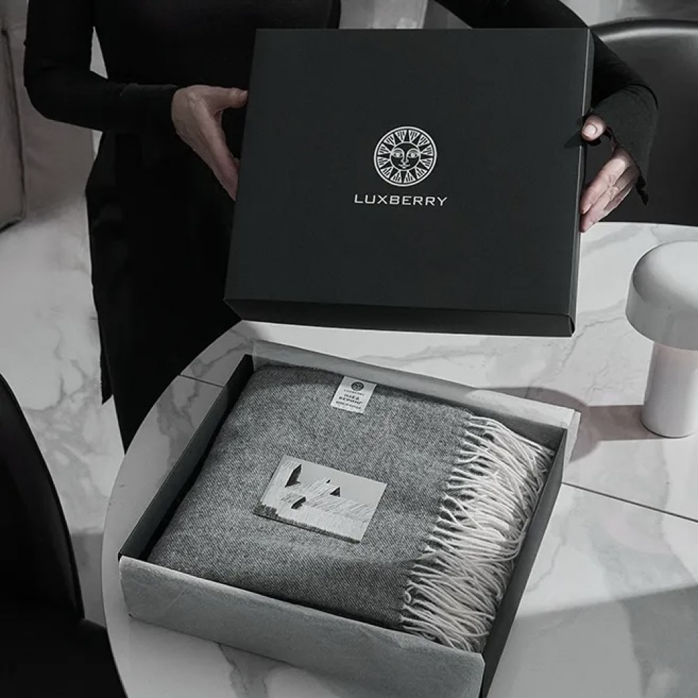 Линейка шерстяных пледов «Беринг» выполнена из высококачественной итальянской шерстяной пряжи с добавлением полиэфира. Пледы получились элегантно тонкие, нежные и теплые. Это классические шерстяные пледы в строгом сером оттенке. По коротким сторонам плед завершают кисти. Упакованы пледы в шикарные подарочные коробки и бумагу тишью. Такой плед будет актуален в любом интерьере и может стать отличной идеей для подарка близким или коллегам.