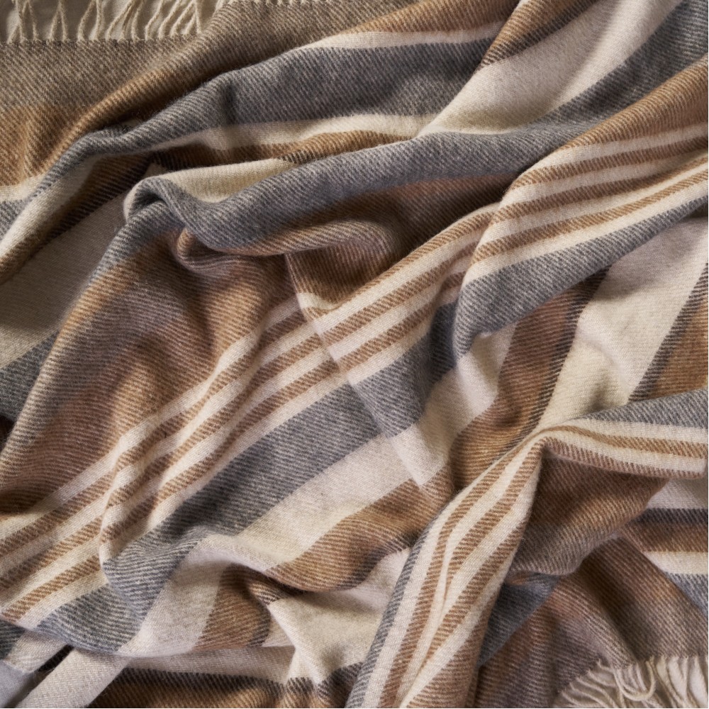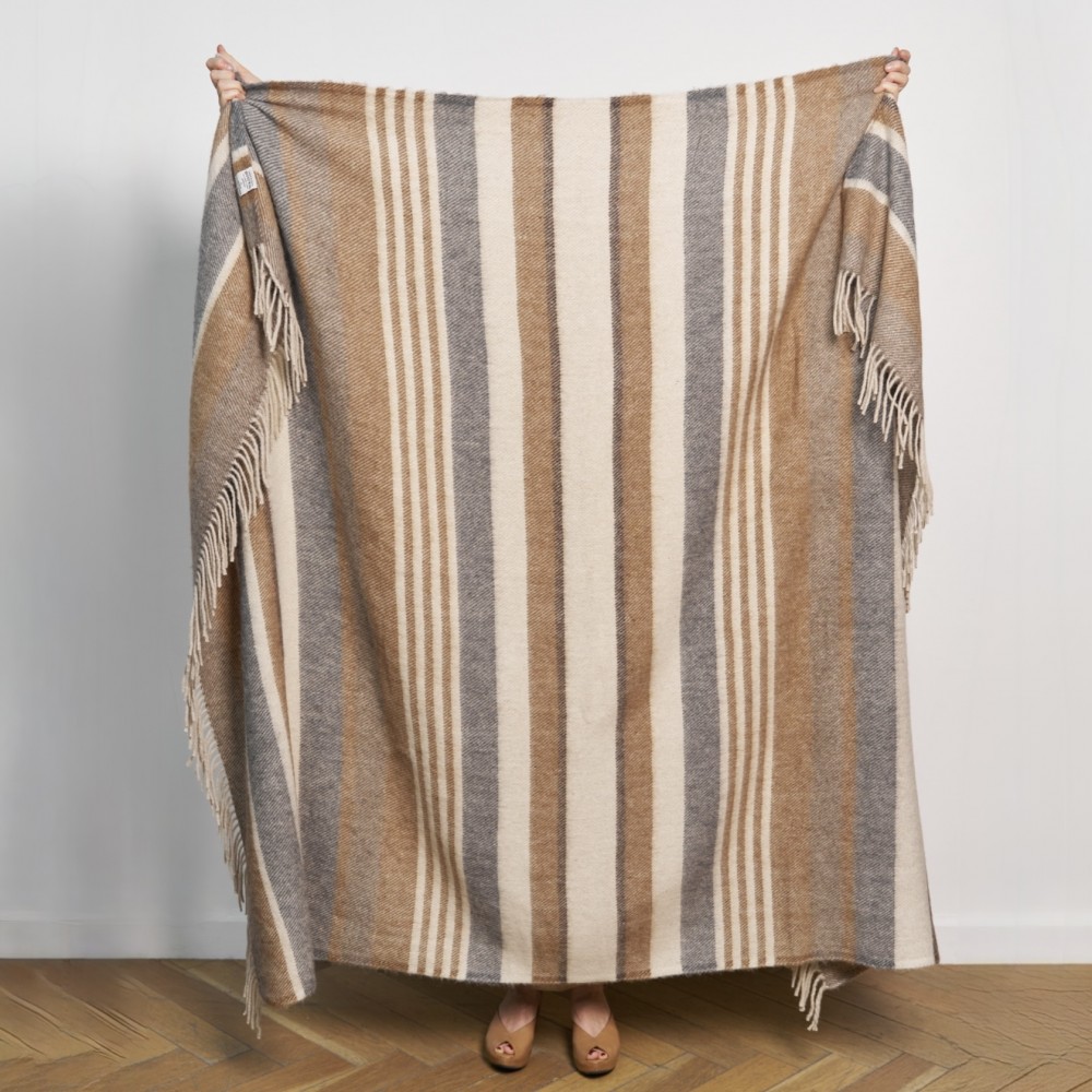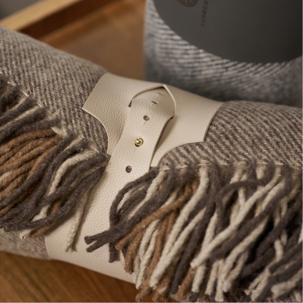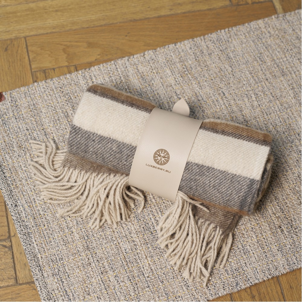 «Murosha» - это шерстяные пледы с классической саржевой фактурой и кистями по краям. В дизайне использованы уютные натуральные оттенки: молочный, бежевый, шоколадный, серый, коричневый. По коротким сторонам плед завершают кисти. Упакованы пледы с помощью элегантной манжеты из искусственной кожи. Такой плед будет актуален в любом интерьере и может стать отличной идеей для подарка близким или коллегам.