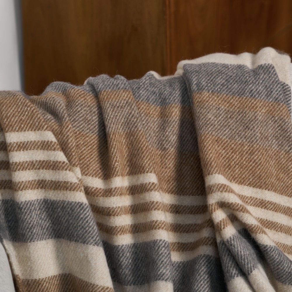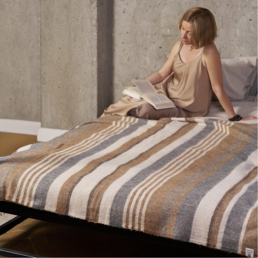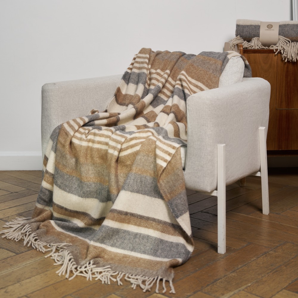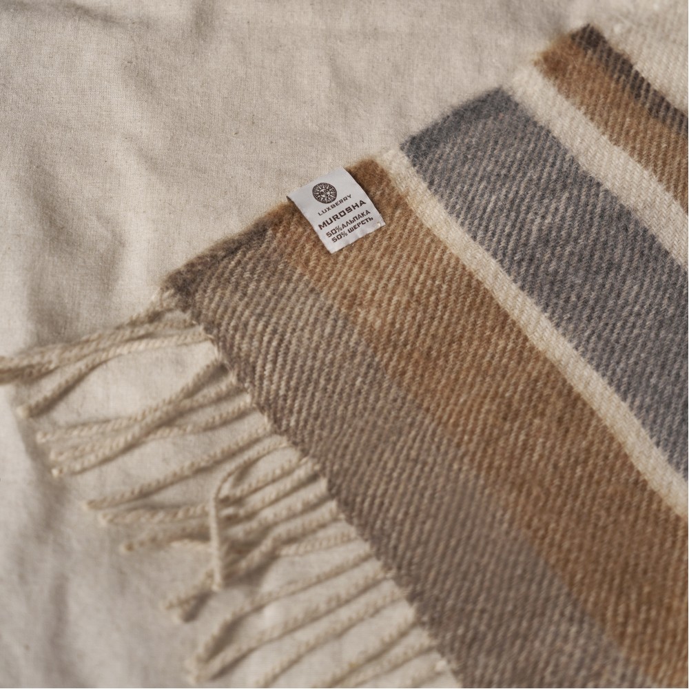 Линейка шерстяных пледов «Murosha» выполнена из нежной шерстяной пряжи. В составе шерсть альпака и овечья шерсть. Шерсть альпака отличается особой мягкостью. Изделия из нее нежные, не колючие и очень теплые. Как и пледы «Murosha».