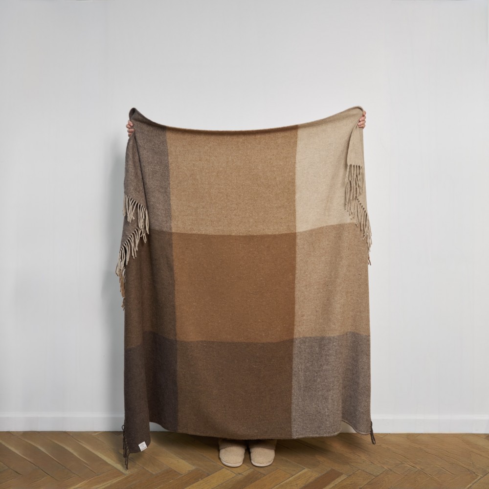 Шерстяной плед «Woolen», размер 150х200 см; состав - 100% шерсть; цвет - бежево-коричневый.