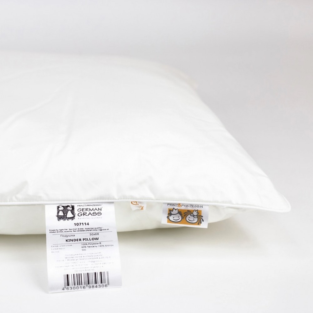 Подушка детская «Kinder Pillow Cotton and Tencel», размер: 50х68 см; наполнитель: 100% полиэстер; чехол: сатин, 60% тенсель, 40% хлопок.