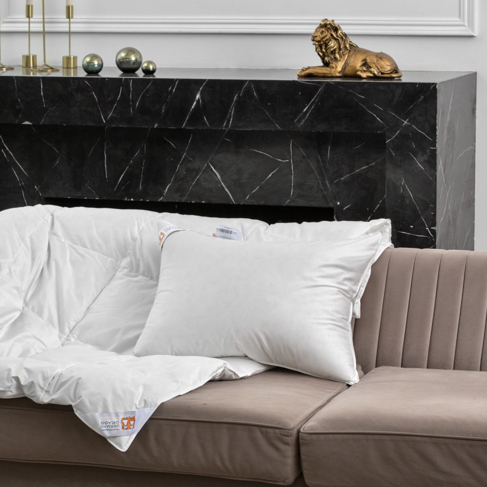 Наполнитель: 100% серый гусиный пух, категория Экстра, коэффициент упругости 700FP. Вес - 400 г.