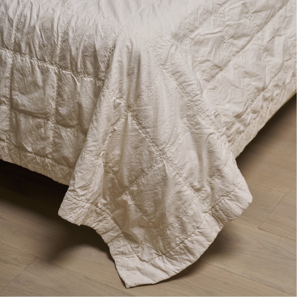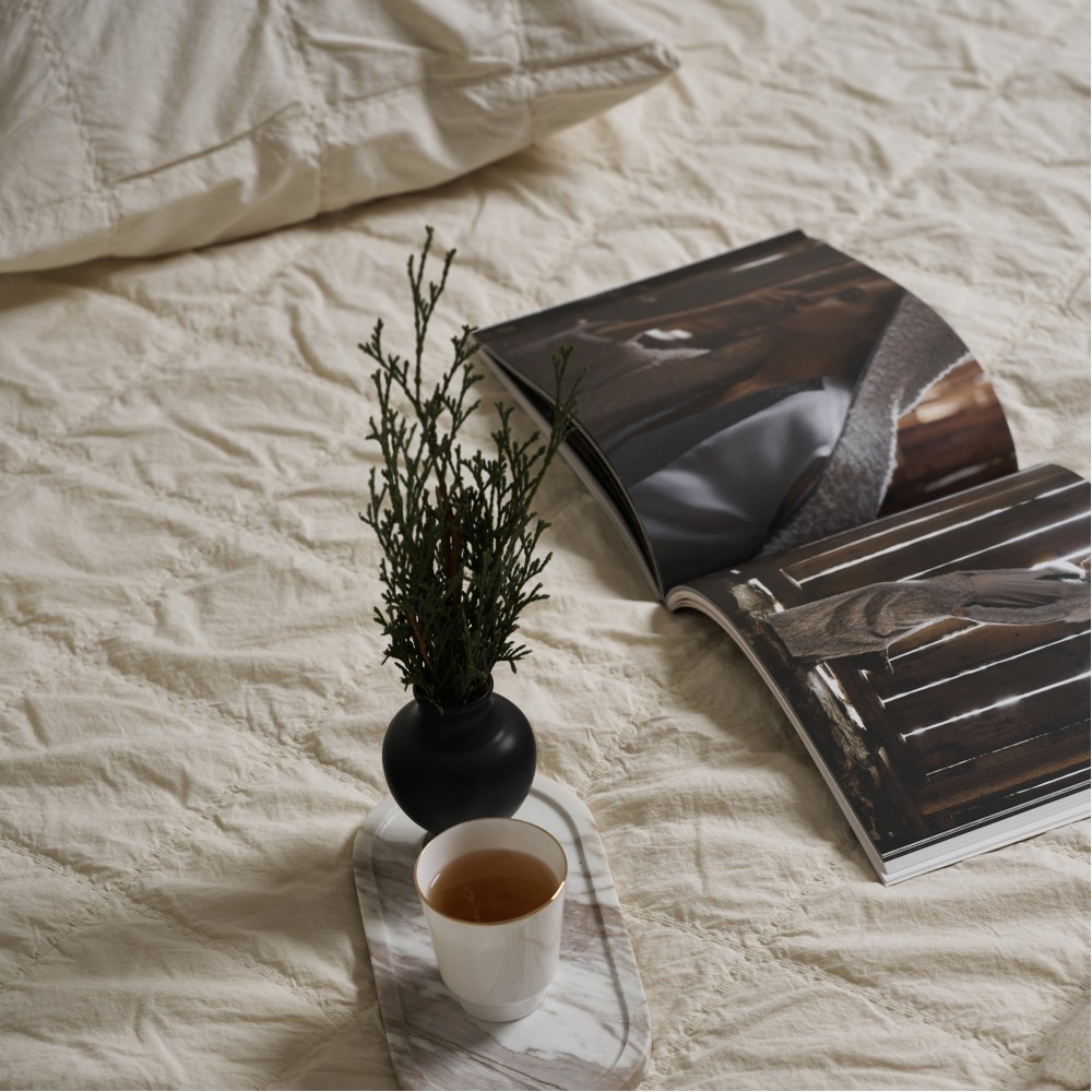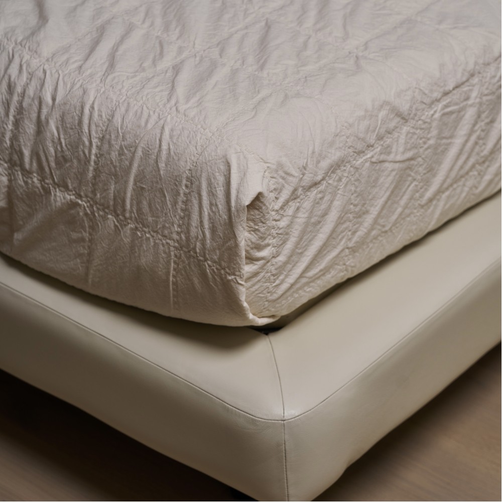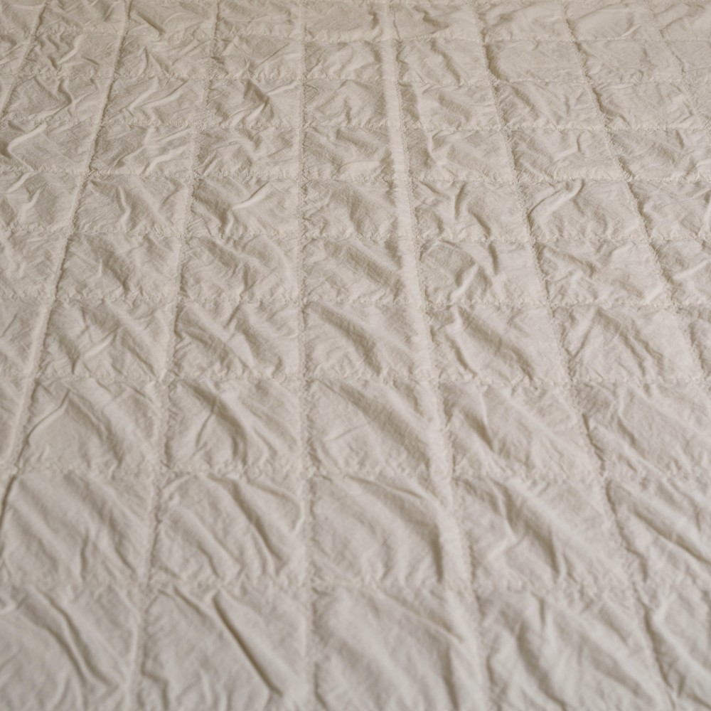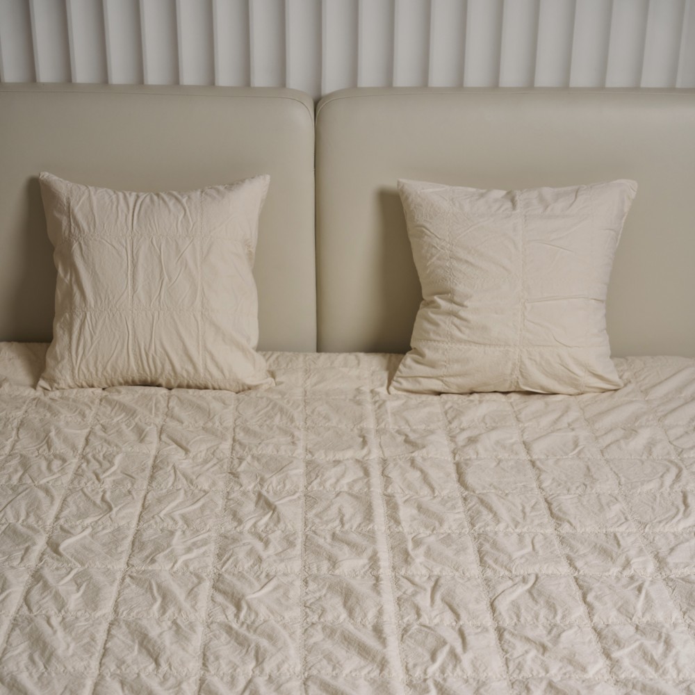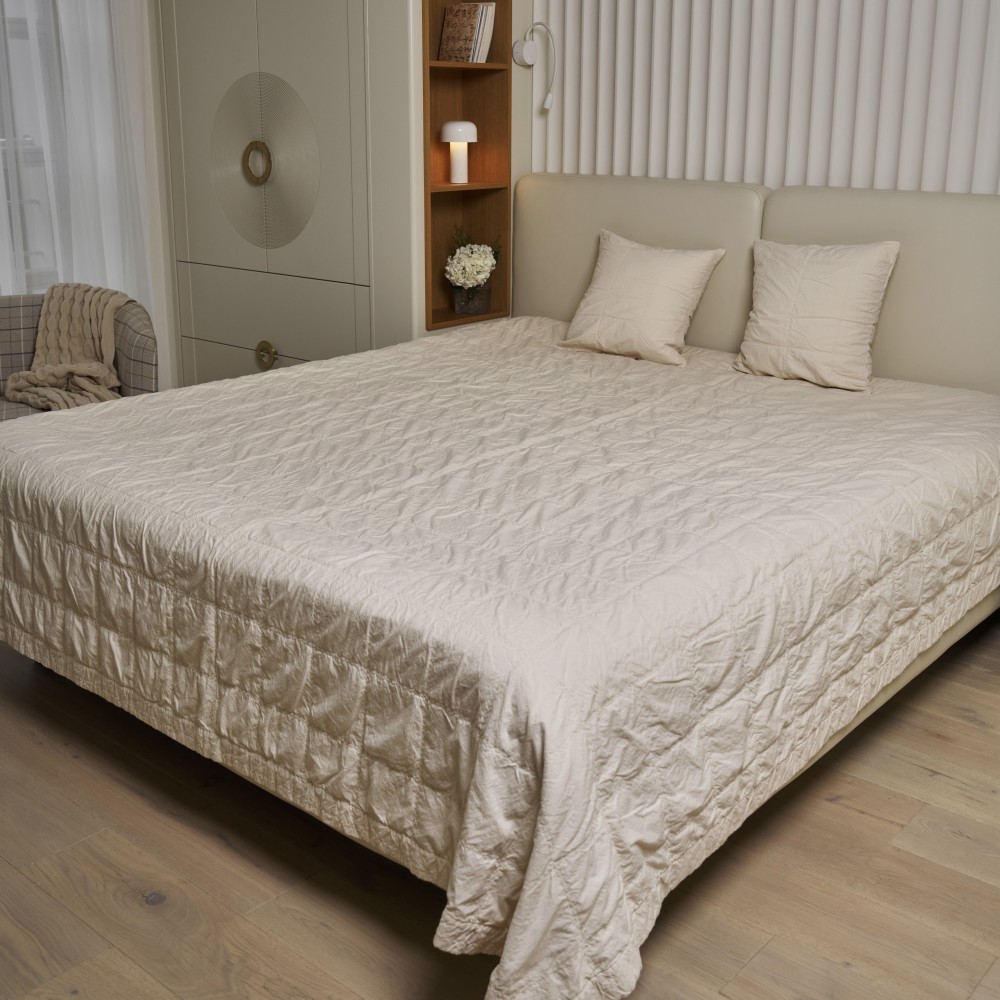 Коллекция португальских покрывал с наволочками «Kubu» представлена в трех расцветках: насыщенный шоколадный, элегантный экрю и темный серый. Стильный в своей простоте дизайн впишется практически в любой интерьер. В коллекции сделан акцент на фактуре. Благодаря технологии stonewashed ткань получила благородный припудренный эффект и нарочитую уютную помятость. По покрывалу проходит имитация квадратной стежки. Текстура стежки поддерживается изнанкой покрывала с микровельветовой фактурой. Такое решение позволяет не только создавать красивые отвороты на покрывале, но и использовать покрывало с обеих сторон. Вельветовая сторона делает оттенок покрывала глубже, насыщеннее. Покрывала будут хорошо смотреться и в заправленном виде и со свободным краем. С трех сторон край завершает аккуратная отстрочка, два угла в изножье оформлены лаконичным "евроуглом".