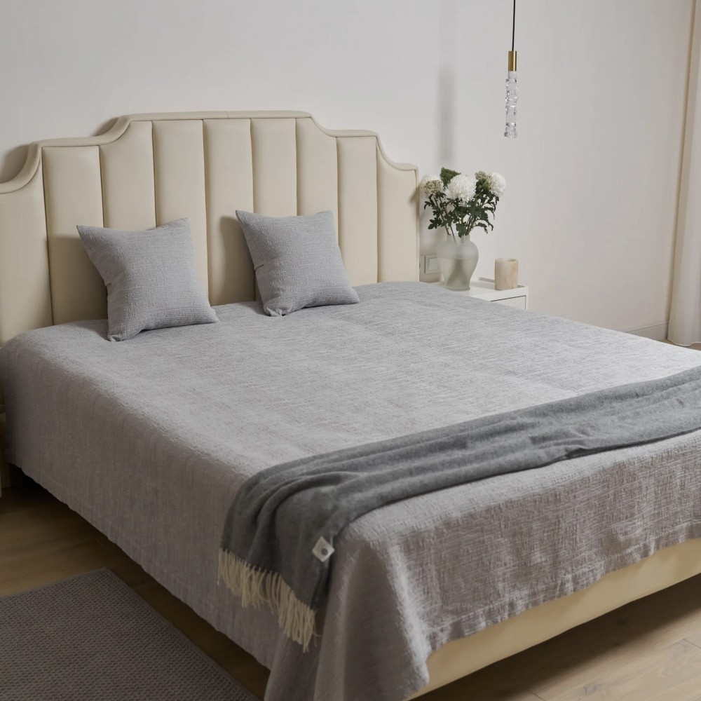 Покрывала португальского производства от бренда Luxberry - это всегда необычные интересные фактуры, благородные оттенки, отличный пошив и натуральный состав. Линейка покрывал «Rainy Day» элегантна в своей простоте. Спокойный светло-серый оттенок с легким лавандовым подтоном идеально поддерживает фактуру ткани, напоминающую затейливую рогожку. Покрывала будут хорошо смотреться и в заправленном виде и со свободным краем. С трех сторон край завершает аккуратная отстрочка, два угла в изножье оформлены лаконичным "евроуглом".