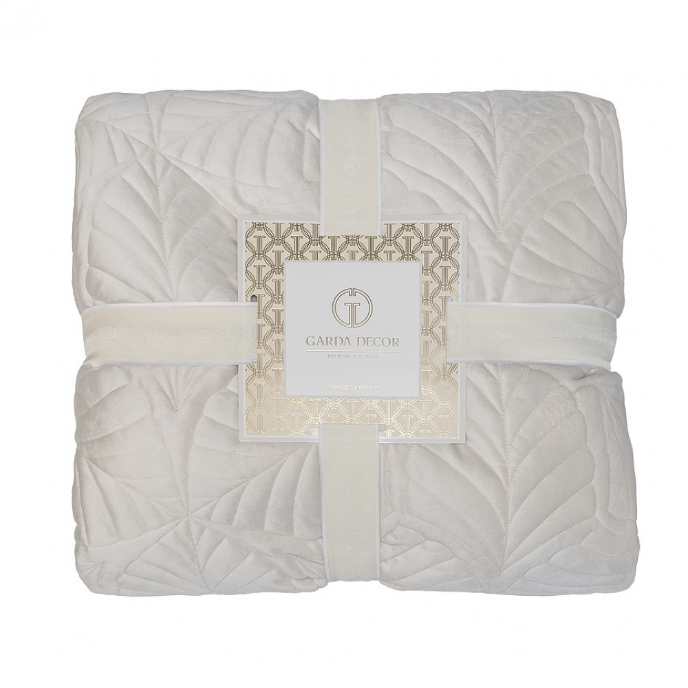Покрывало стеганое «Флора», цвет: кремовый (180х230 см; велюр: 100% полиэстер)
