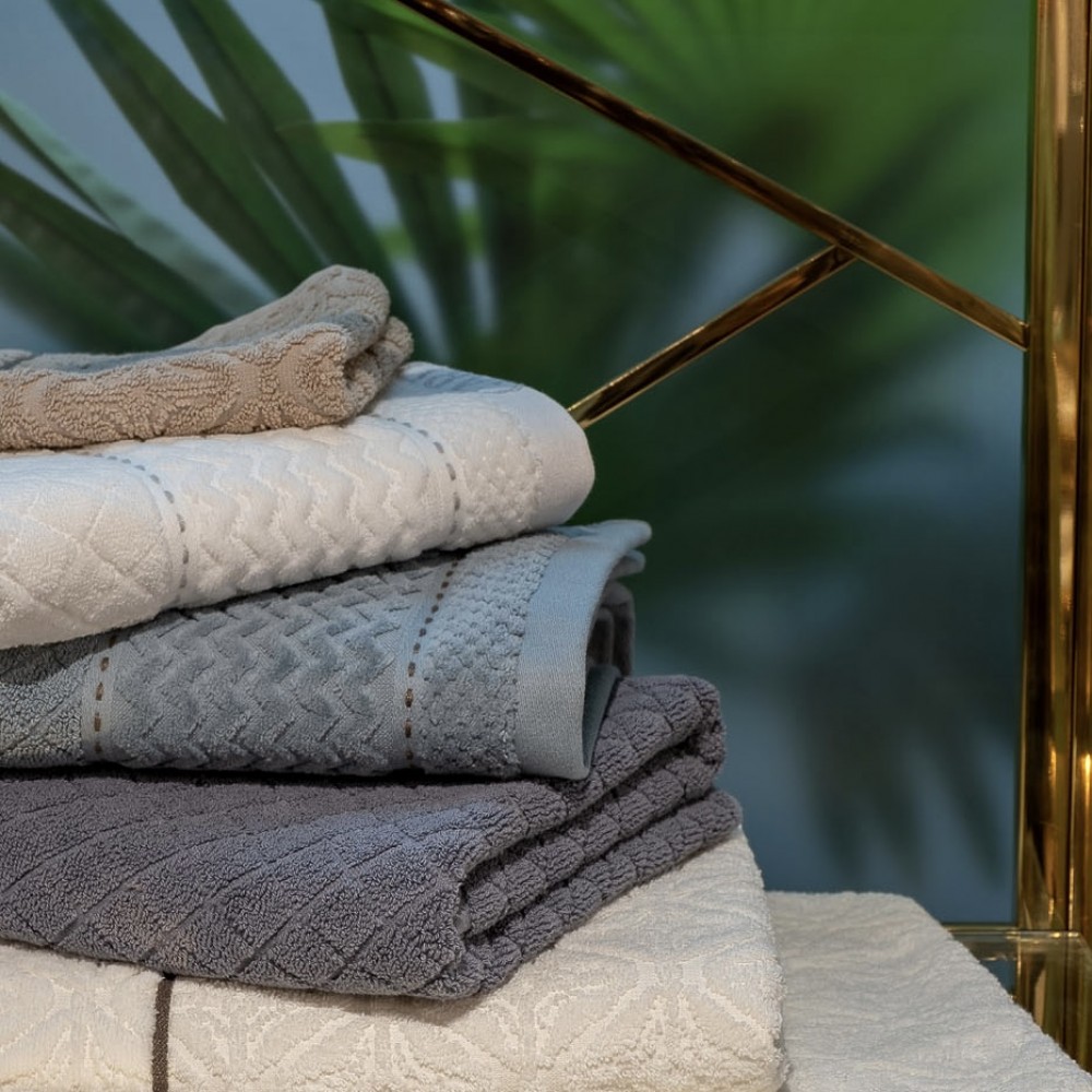 Полотенца представлены в двух размерах: 50х90 см и 70х140 см. В линейке «Наполи» 3 цвета: белый, серый и пастельно-бирюзовый. Всю линейку «Наполи» смотрите тут.