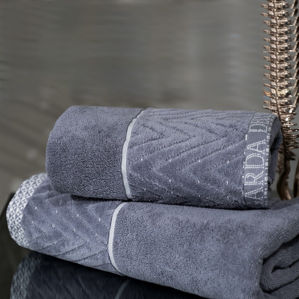 Полотенца представлены в трех размерах: 30х50 см, 50х90 см, 70х140 см. В линейке «Орсетто» 3 цвета: бордовый, графитовый и белый. Всю линейку «Орсетто» смотрите тут.