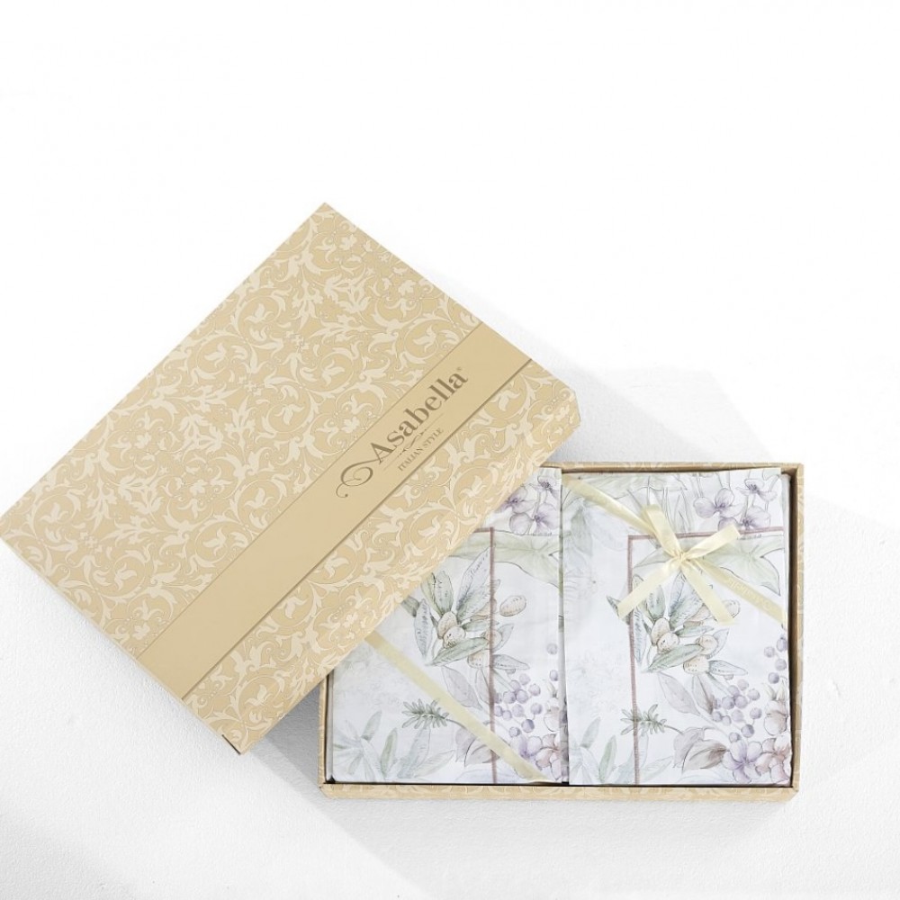 Пододеяльники декорированы "ушками" с трех сторон. Закрываются на скрытую молнию, расположенную внизу пододеяльника. Внутри пододеяльников предусмотрены специальные тесемочки для фиксации одеяла (на одеяле должны быть ответные петли). Эта небольшая деталь сделает использование постельного белья еще комфортнее: одеяло не сбивается в пододеяльнике, и заправлять его становится гораздо удобнее. Наволочки в размере 50х70 см выполнены в оксфордском дизайне - с "ушками" с трех сторон. "Ушки" наволочек и пододеяльников декорированы атласной строчкой. Наволочки в размере 70х70 см выполнены в классическом дизайне. Все наволочки закрываются методом запаха. Простыня в комплекте свободная (прямая). Комплекты упакованы в подарочные коробки.