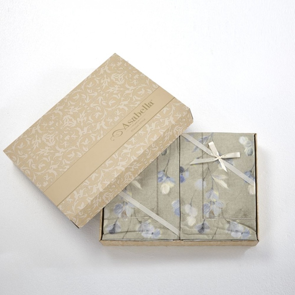 Пододеяльники декорированы "ушками" с трех сторон. Закрываются на скрытую молнию, расположенную внизу пододеяльника. Внутри пододеяльников предусмотрены специальные тесемочки для фиксации одеяла (на одеяле должны быть ответные петли). Эта небольшая деталь сделает использование постельного белья еще комфортнее: одеяло не сбивается в пододеяльнике, и заправлять его становится гораздо удобнее. Наволочки в размере 50х70 см выполнены в оксфордском дизайне - с "ушками" с трех сторон. Наволочки в размере 70х70 см выполнены в классическом дизайне. Все наволочки закрываются методом запаха. Простыня в комплекте на резинке (натяжная). Комплекты упакованы в подарочную коробку.