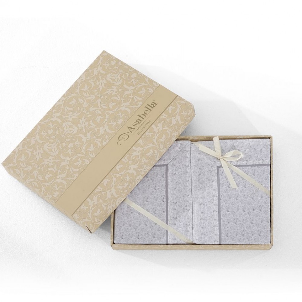 Пододеяльники декорированы "ушками" с трех сторон. Закрываются на скрытую молнию, расположенную внизу пододеяльника. Внутри пододеяльников предусмотрены специальные тесемочки для фиксации одеяла (на одеяле должны быть ответные петли). Эта небольшая деталь сделает использование постельного белья еще комфортнее: одеяло не сбивается в пододеяльнике, и заправлять его становится гораздо удобнее. Наволочки в размере 50х70 см выполнены в оксфордском дизайне - с "ушками" с трех сторон. Острочка "ушек" на наволочках и пододеяльниках декорирована аккуртным кантом в тон ткани-компаньона. Наволочки в размере 70х70 см выполнены в классическом дизайне. По периметру наволочек проходит лаконичная двойная строчка. Все наволочки закрываются методом запаха. Простыня в комплекте свободная (прямая). Комплекты упакованы в подарочную коробку.