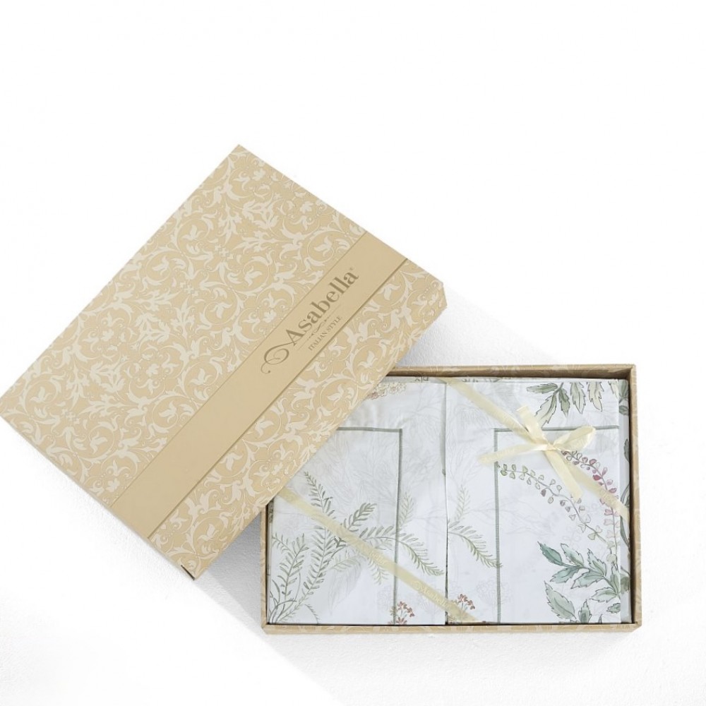Пододеяльники декорированы "ушками" с трех сторон. Закрываются на скрытую молнию, расположенную внизу пододеяльника. Внутри пододеяльников предусмотрены специальные тесемочки для фиксации одеяла (на одеяле должны быть ответные петли). Эта небольшая деталь сделает использование постельного белья еще комфортнее: одеяло не сбивается в пододеяльнике, и заправлять его становится гораздо удобнее. Наволочки в размере 50х70 см выполнены в оксфордском дизайне - с "ушками" с трех сторон. "Ушки" наволочек и пододеяльников декорированы атласной строчкой. Наволочки в размере 70х70 см выполнены в классическом дизайне. Все наволочки закрываются методом запаха. Простыня в комплекте свободная (прямая). Комплекты упакованы в подарочные коробки.