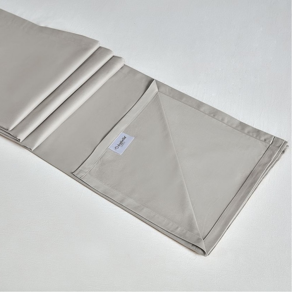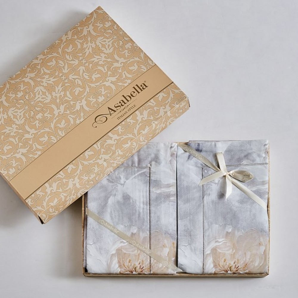 Пододеяльники декорированы "ушками" с трех сторон. Закрываются на скрытую молнию, расположенную внизу пододеяльника. Внутри пододеяльников предусмотрены специальные тесемочки для фиксации одеяла (на одеяле должны быть ответные петли). Эта небольшая деталь сделает использование постельного белья еще комфортнее: одеяло не сбивается в пододеяльнике, и заправлять его становится гораздо удобнее. Наволочки в размере 50х70 см выполнены в оксфордском дизайне - с "ушками" с трех сторон. "Ушки" наволочек и пододеяльников декорированы атласной строчкой. Наволочки в размере 70х70 см выполнены в классическом дизайне. Все наволочки закрываются методом запаха. Простыня в комплекте свободная (прямая). Комплекты упакованы в подарочную коробку.