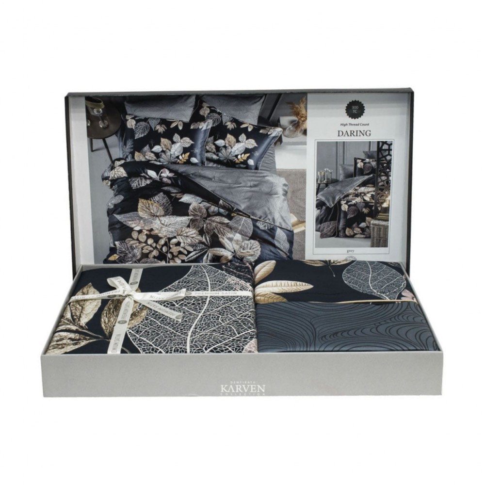 Комплекты постельного белья «Daring Grey» из премиальной коллекции бренда Karven выполнены из нежного, с изящным блеском сатина высокой плотности (300ТС). В составе отборный 100% хлопок.