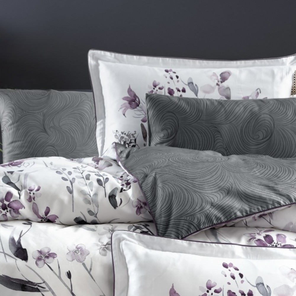 Комплекты постельного белья «Delcina Grey» из премиальной коллекции бренда Karven выполнены из нежного, с изящным блеском сатина высокой плотности (300ТС). В составе отборный 100% хлопок.