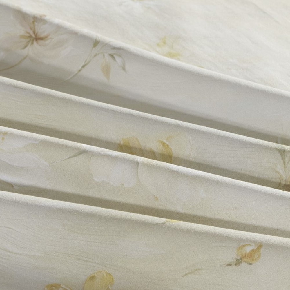 Внешняя сторона пододеяльников и наволочки в размере 50х70 см украшены цветочным принтом. Обратная сторона пододеяльников, простыни и наволочки в размере 70х70 см выполнены из однотонной ткани-компаньона.