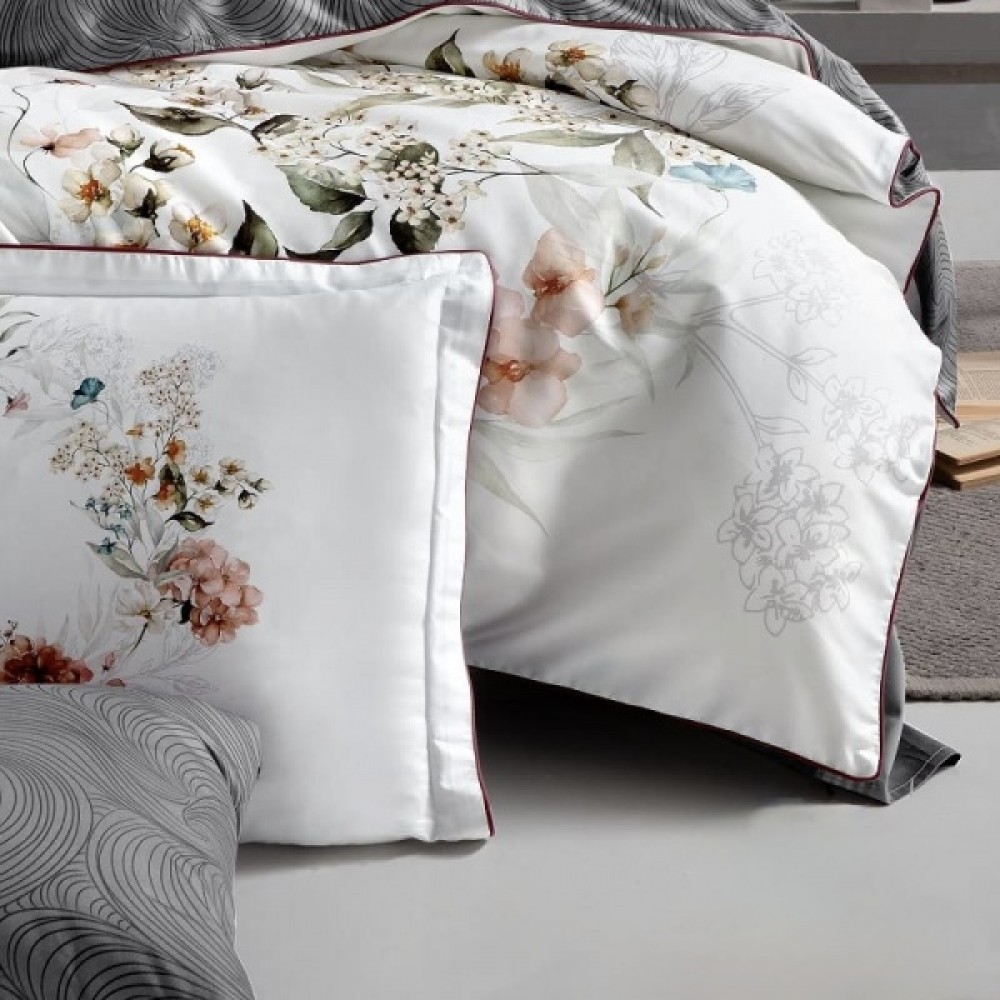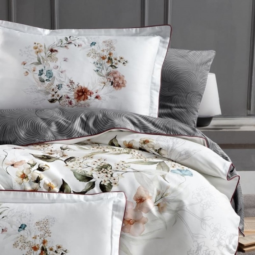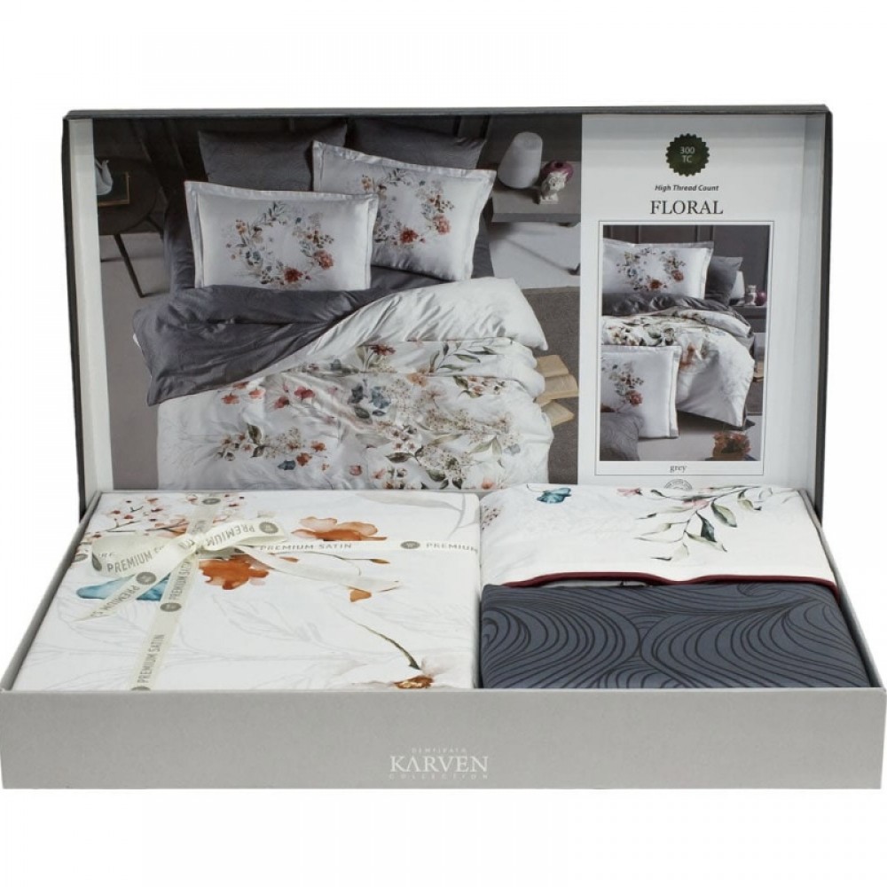 Комплекты постельного белья «Floral Grey» из премиальной коллекции бренда Karven выполнены из нежного, с изящным блеском сатина высокой плотности (300ТС). В составе отборный 100% хлопок.