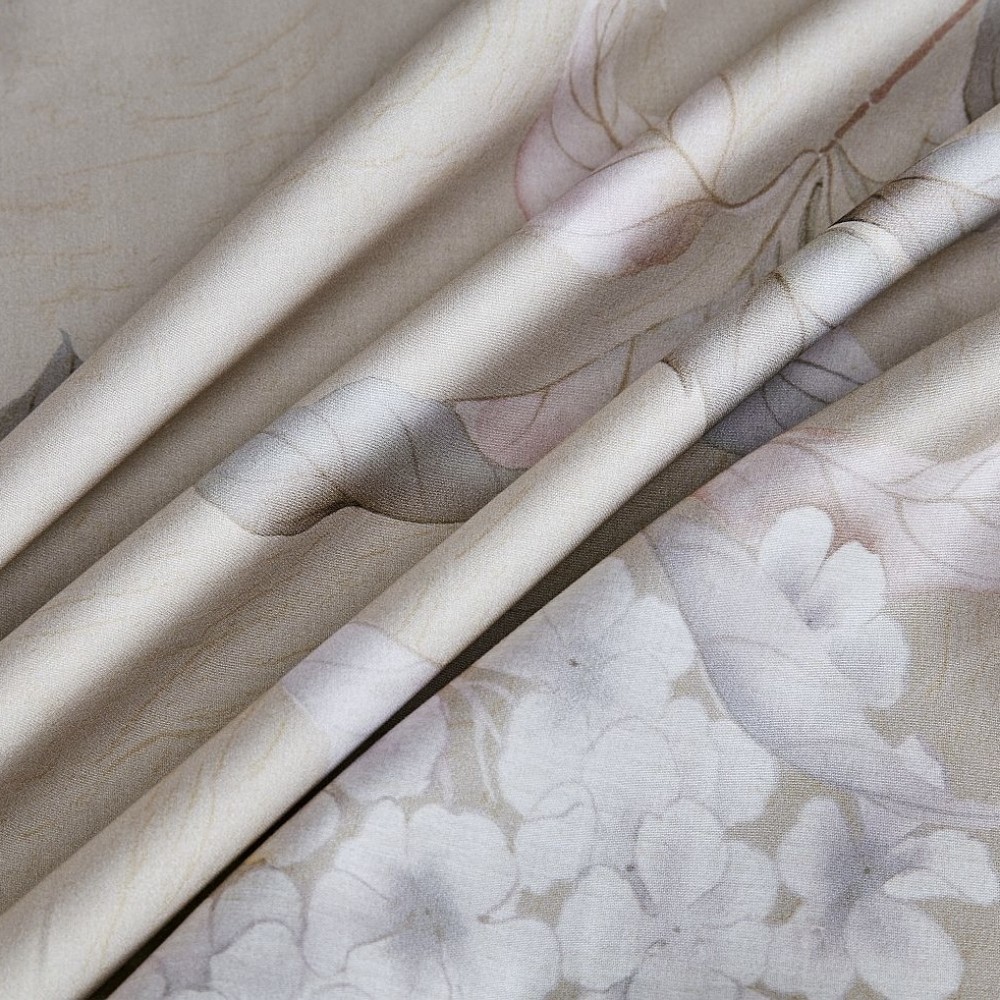 Комплекты постельного белья «Gortenzia» выполнены из фланели, в составе которой тенсель (61%) и хлопок (39%). Благодаря такому сочетанию ткань получилась мягкая, уютная, легче хлопковой фланели. Визуально имеет легкий блеск, а тактильно - эффект персиковой кожи. При этом она так же легка в уходе и прекрасно проводит воздух. Такая фланель придется по вкусу тем, кто любит постельное белье из традиционной хлопковой фланели и тем, кто предпочитает белье из сатина.