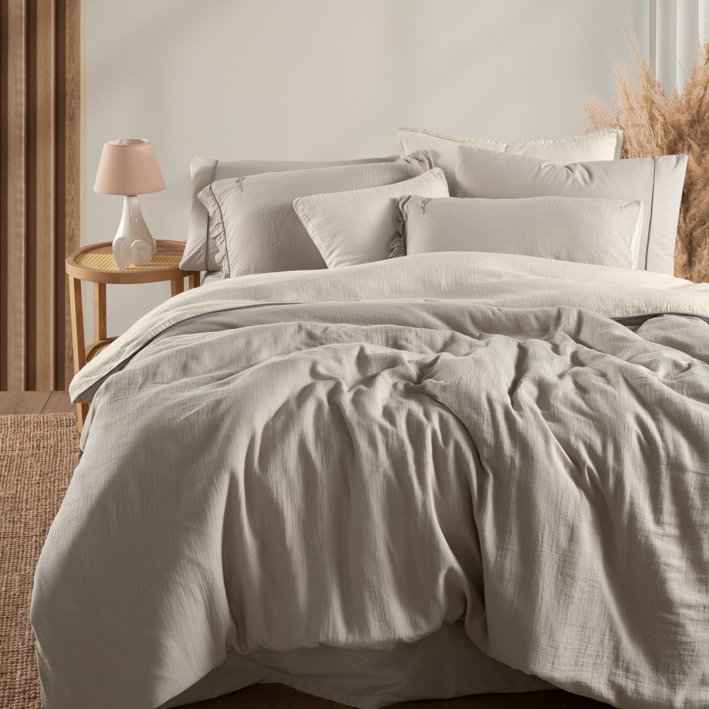 Постельное белье из коллекции Mood Comfort от турецкого бренда Sarev порадует вас необычными уютными фактурами и полностью натуральными составами. В этой коллекции вы найдете нежнейшие муслины, мягкие вареные и воздушные жатые хлопковые ткани. Декор в коллекции - это кисточки, кружево и вышивка, милые завязочки. И, конечно, безупречное качество пошива.