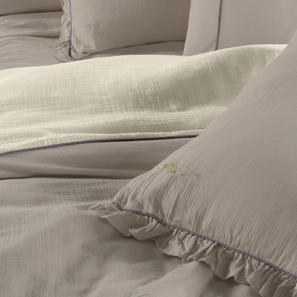 Постельное белье «Kenyon Ekru» с вышивкой (евро; муслин: 100% хлопок)