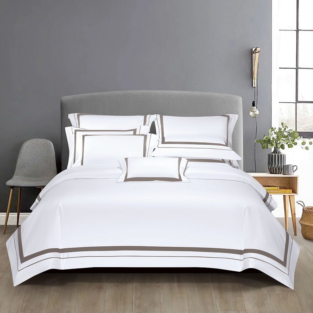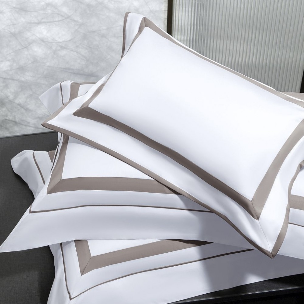 Постельное белье «Lisere» выполнено в классическом белом цвете и декорировано элегантными однотонными вставками по периметру наволочек и пододеяльников. Пододеяльники декорированы "ушками" с трех сторон. Закрываются на скрытую молнию, расположенную внизу пододеяльника. Внутри пододеяльников предусмотрены специальные тесемочки для фиксации одеяла (на одеяле должны быть ответные петли). Эта небольшая деталь сделает использование постельного белья еще комфортнее: одеяло не сбивается в пододеяльнике, и заправлять его становится гораздо удобнее. Наволочки выполнены в оксфордском дизайне - с "ушками" по периметру. Закрываются методом запаха. Простыня в комплекте свободная (прямая). Комплекты упакованы в подарочные коробки.