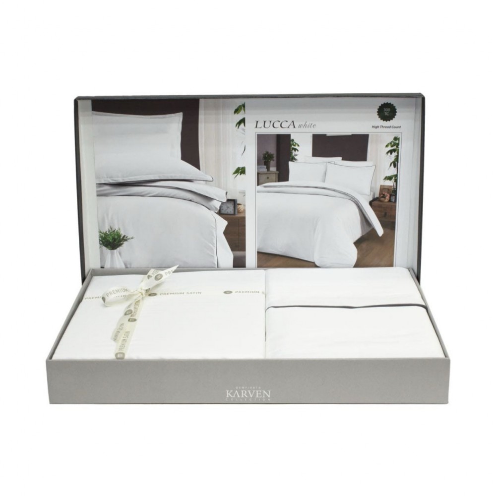 Комплекты постельного белья «Lucca» из премиальной коллекции бренда Karven выполнены из нежного, с изящным блеском сатина высокой плотности (300ТС). В составе отборный 100% хлопок.