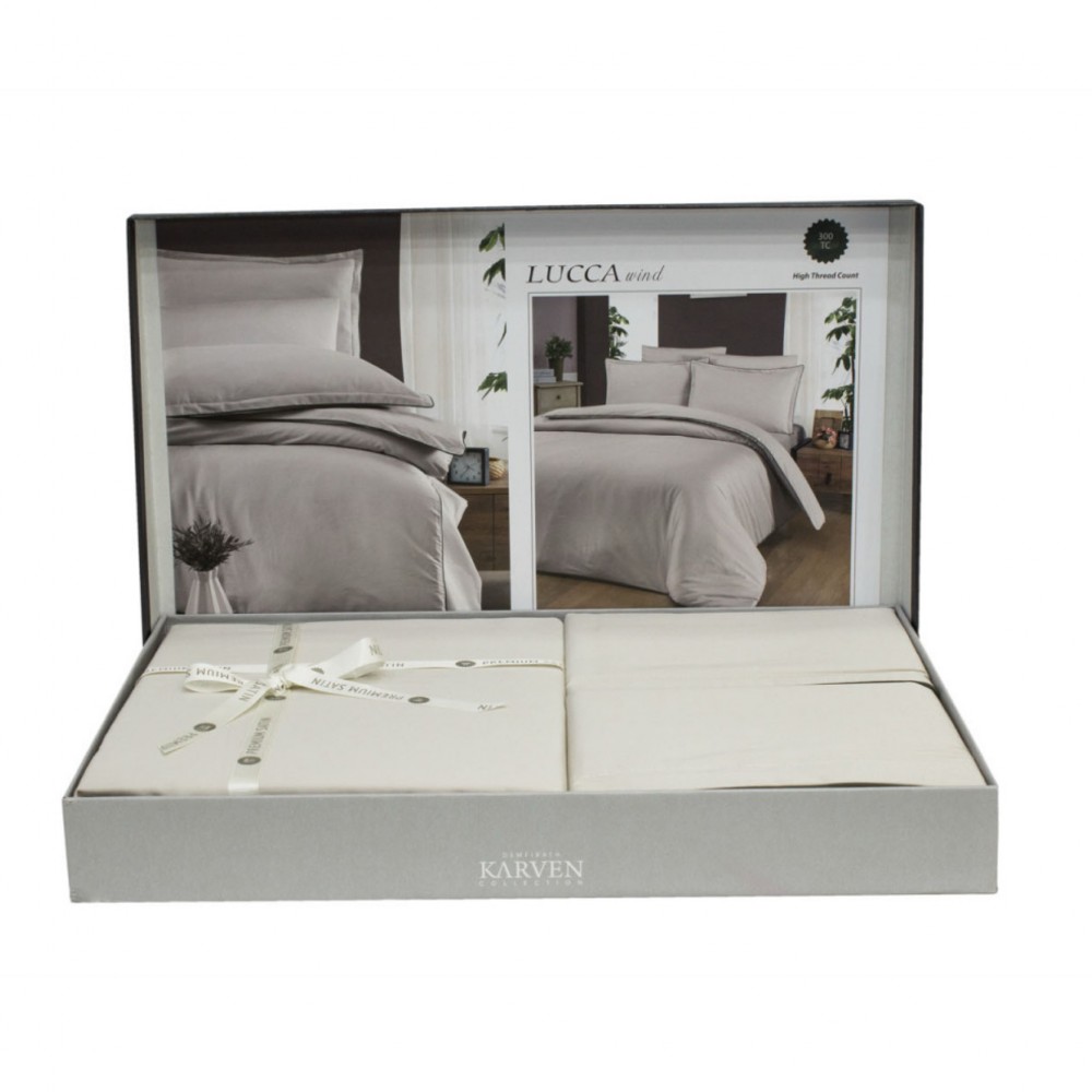 Комплекты постельного белья «Lucca» из премиальной коллекции бренда Karven выполнены из нежного, с изящным блеском сатина высокой плотности (300ТС). В составе отборный 100% хлопок.
