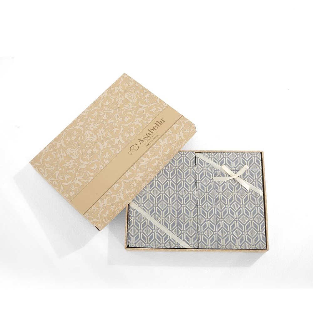 Пододеяльники декорированы "ушками" с трех сторон. Закрываются на скрытую молнию, расположенную внизу пододеяльника. Внутри пододеяльников предусмотрены специальные тесемочки для фиксации одеяла (на одеяле должны быть ответные петли). Эта небольшая деталь сделает использование постельного белья еще комфортнее: одеяло не сбивается в пододеяльнике, и заправлять его становится гораздо удобнее. Наволочки в размере 50х70 см выполнены в оксфордском дизайне - с "ушками" с трех сторон. "Ушки" наволочек и пододеяльников декорированы атласной строчкой. Наволочки в размере 70х70 см выполнены в классическом дизайне. Все наволочки закрываются методом запаха. Простыня в комплекте свободная (прямая). Комплекты упакованы в подарочные коробки.