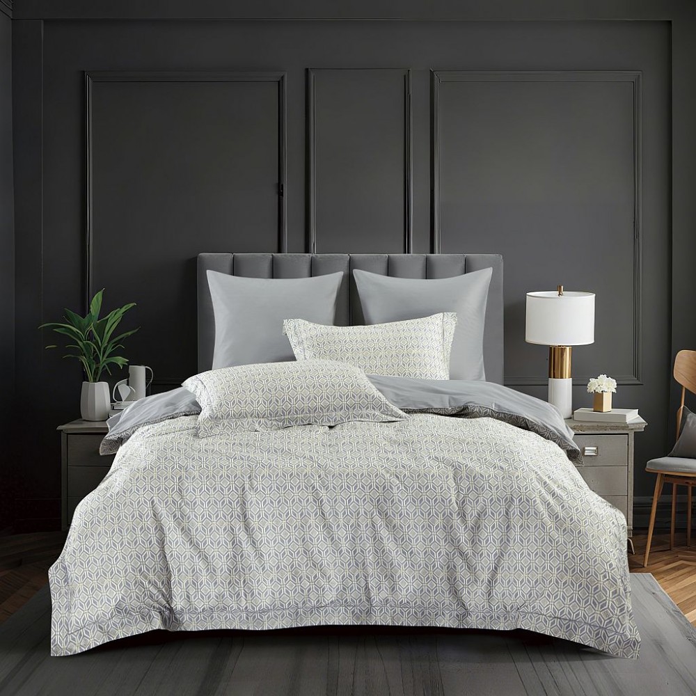 Внешняя сторона пододеяльников и наволочки в размере 50х70 см украшены орнаментом. Обратная сторона пододеяльников, простыни и наволочки в размере 70х70 см выполнены из однотонной ткани-компаньона.