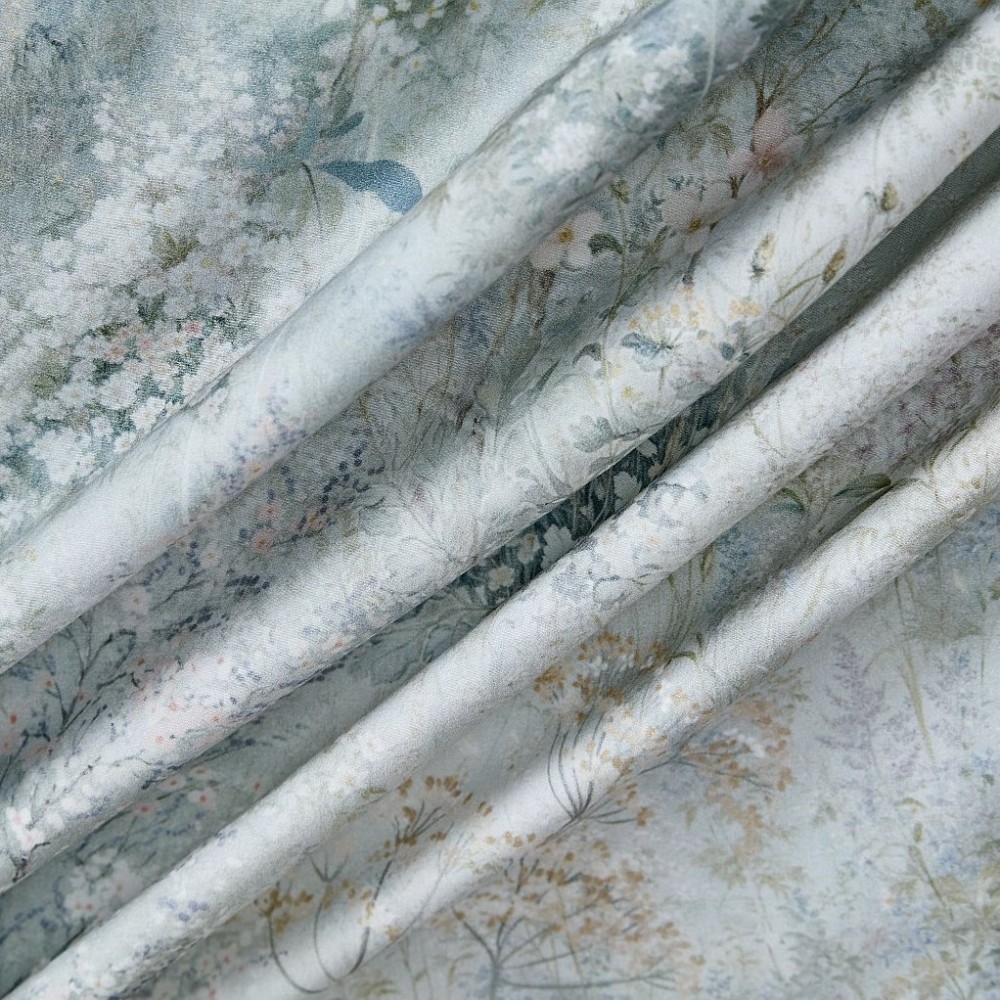 Внешняя сторона пододеяльников и наволочки в размере 50х70 см украшены изящными рисунком с луговыми цветами и травами. Обратная сторона пододеяльников, простыни и наволочки в размере 70х70 см выполнены из однотонной ткани-компаньона.