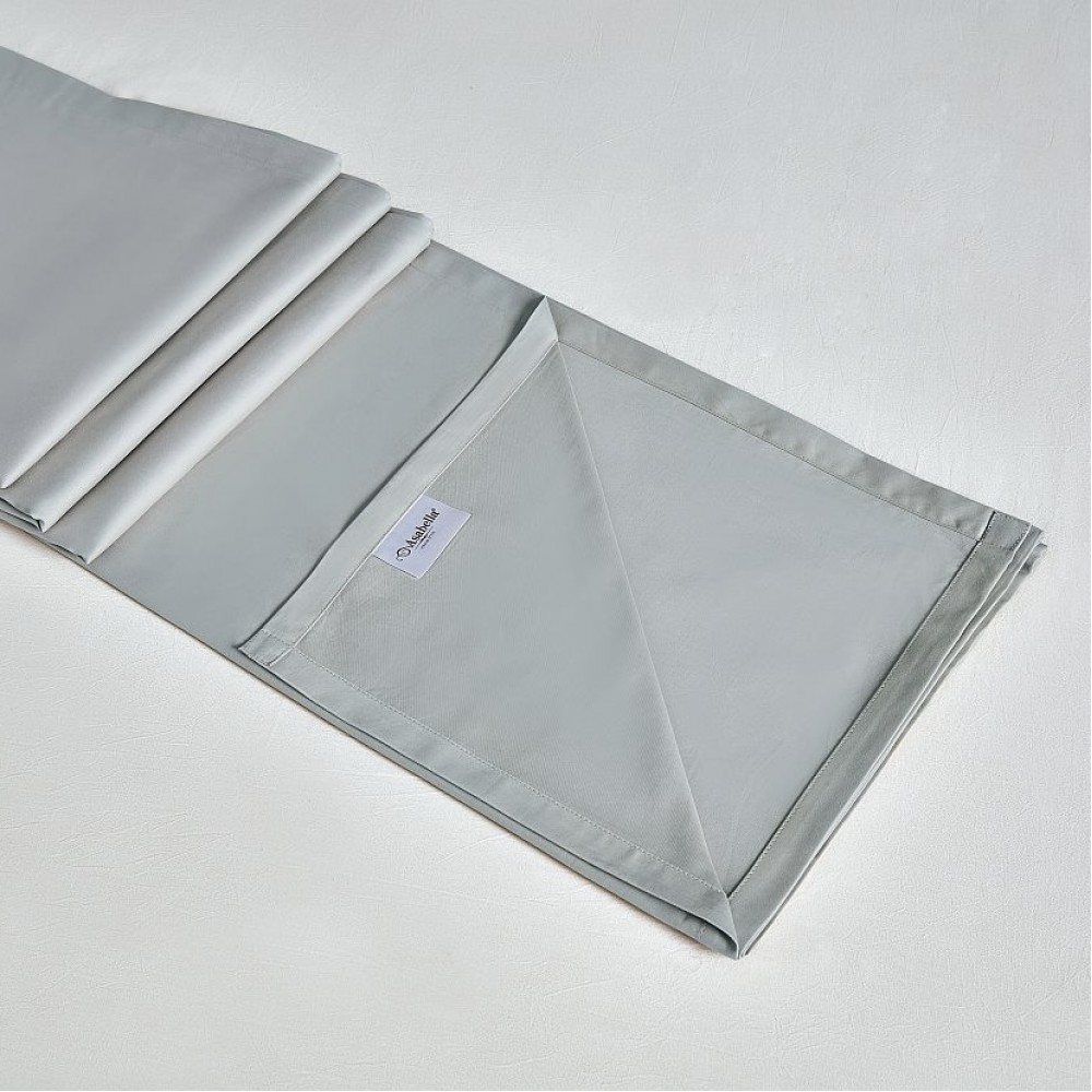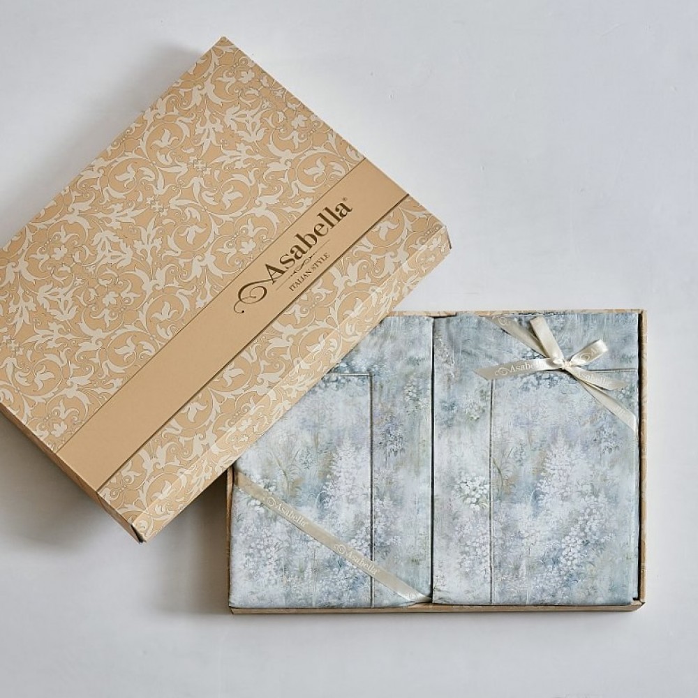 Пододеяльники декорированы "ушками" с трех сторон. Закрываются на скрытую молнию, расположенную внизу пододеяльника. Внутри пододеяльников предусмотрены специальные тесемочки для фиксации одеяла (на одеяле должны быть ответные петли). Эта небольшая деталь сделает использование постельного белья еще комфортнее: одеяло не сбивается в пододеяльнике, и заправлять его становится гораздо удобнее. Наволочки в размере 50х70 см выполнены в оксфордском дизайне - с "ушками" с трех сторон. "Ушки" наволочек и пододеяльников декорированы атласной строчкой. Наволочки в размере 70х70 см выполнены в классическом дизайне. Все наволочки закрываются методом запаха. Простыня в комплекте свободная (прямая). Комплекты упакованы в подарочную коробку.